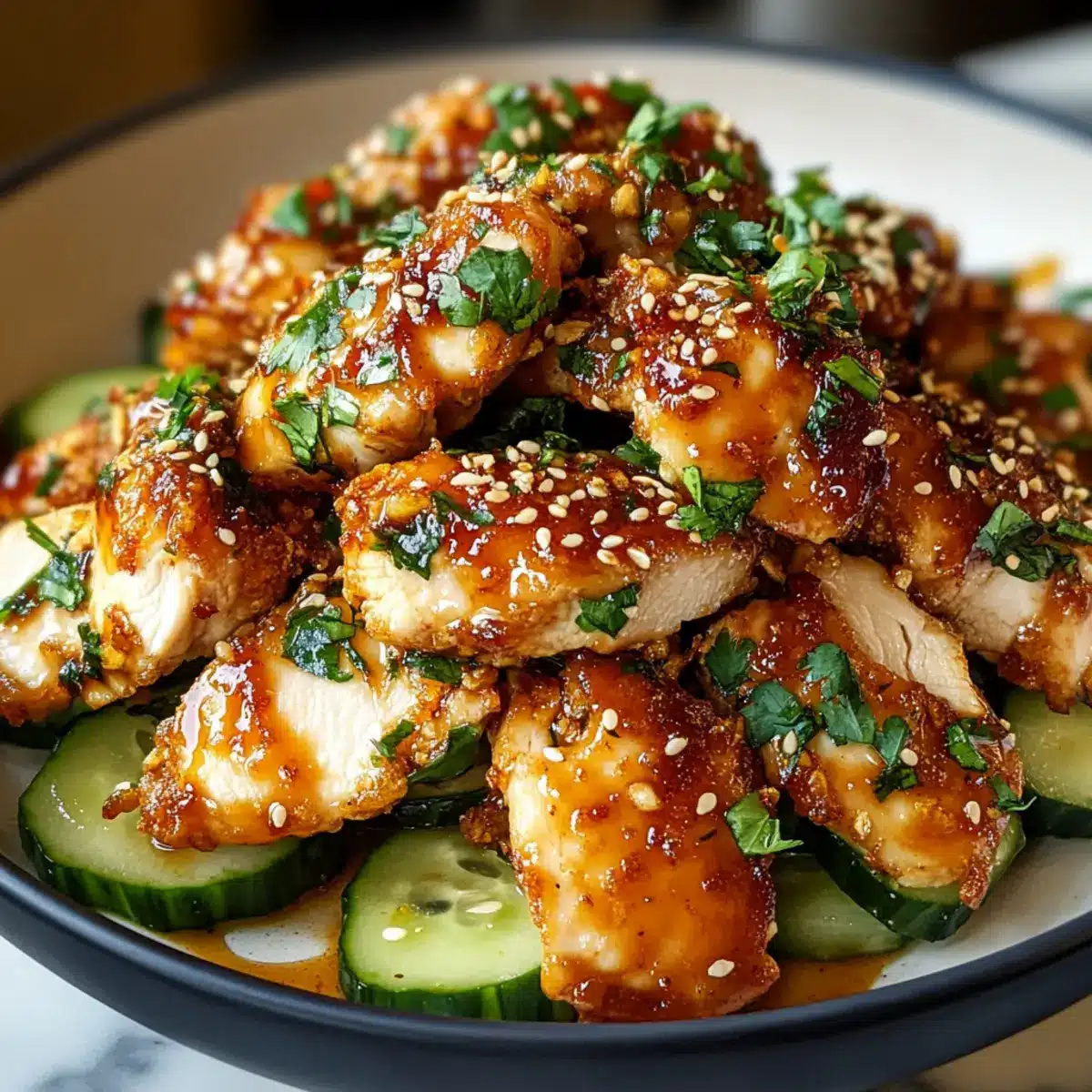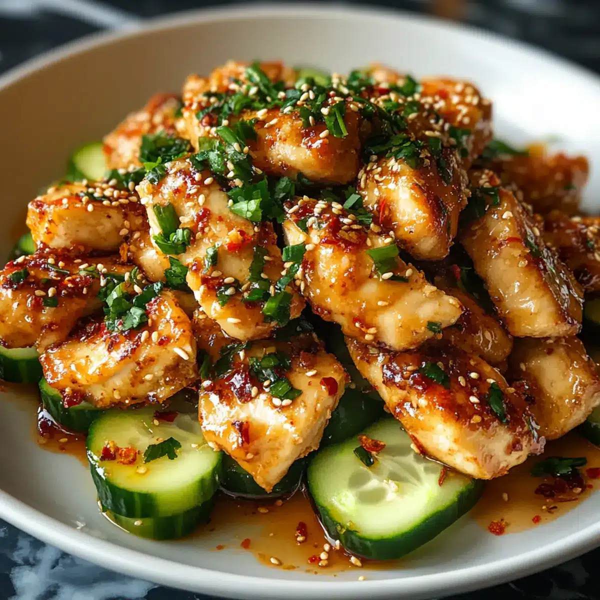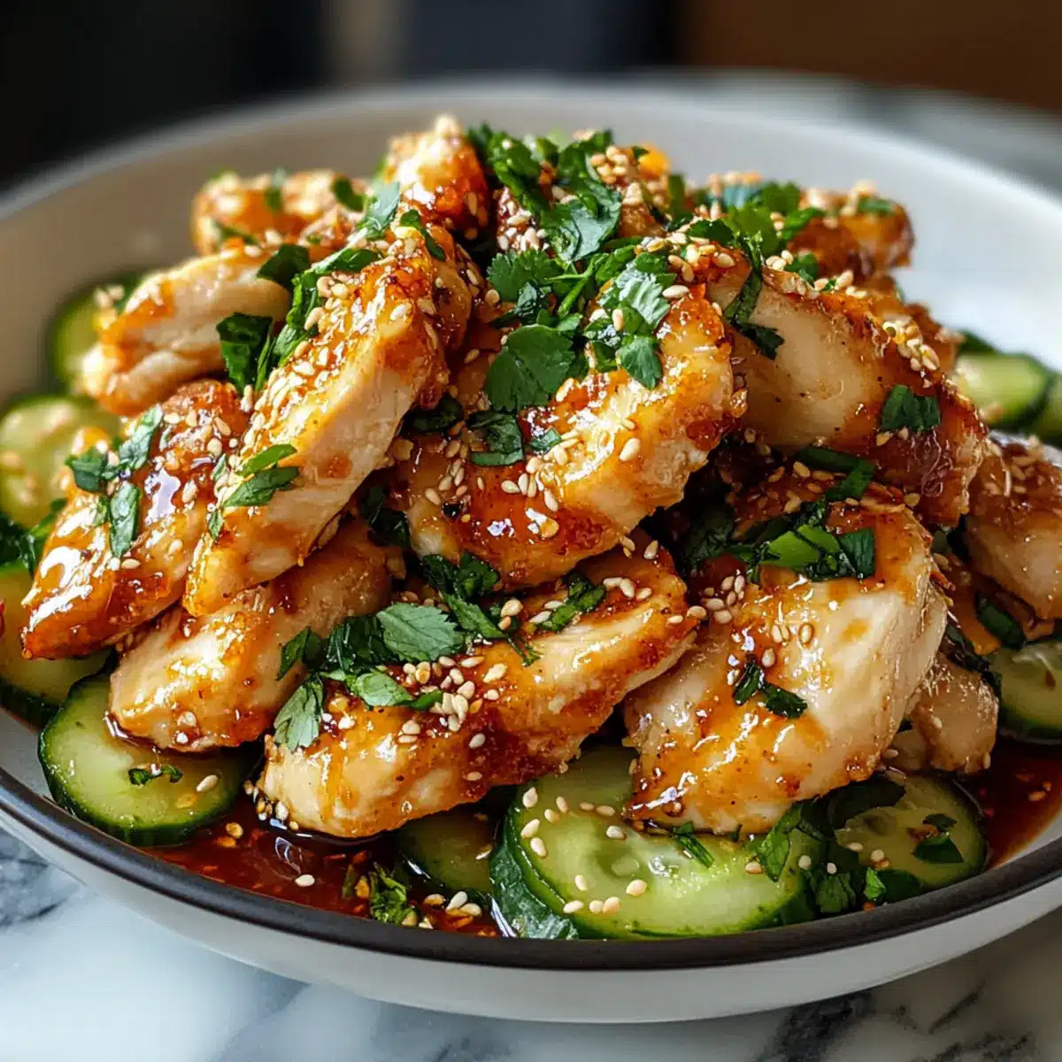 Einfachheit steht im Vordergrund: In nur 30 Minuten holst du ein köstliches Gericht auf den Tisch, ohne stundenlang in der Küche zu stehen. Frischer Geschmack: Das zarte Hühnchen kombiniert mit knackigen Gurken und der aromatischen Sauce macht jede Biss zu einem Erlebnis. Anpassungsfähig: Ideal für jeden Geschmack! Du kannst Tofu für eine pflanzenbasierte Variante verwenden oder das Gericht glutenfrei genießen. Publikumsliebling: Ein garantiertes Highlight bei jeglichen Zusammenkünften. Überrasche deine Gäste mit einer lebhaften und gesunden Mahlzeit, die für viele WOW-Momente sorgen wird.