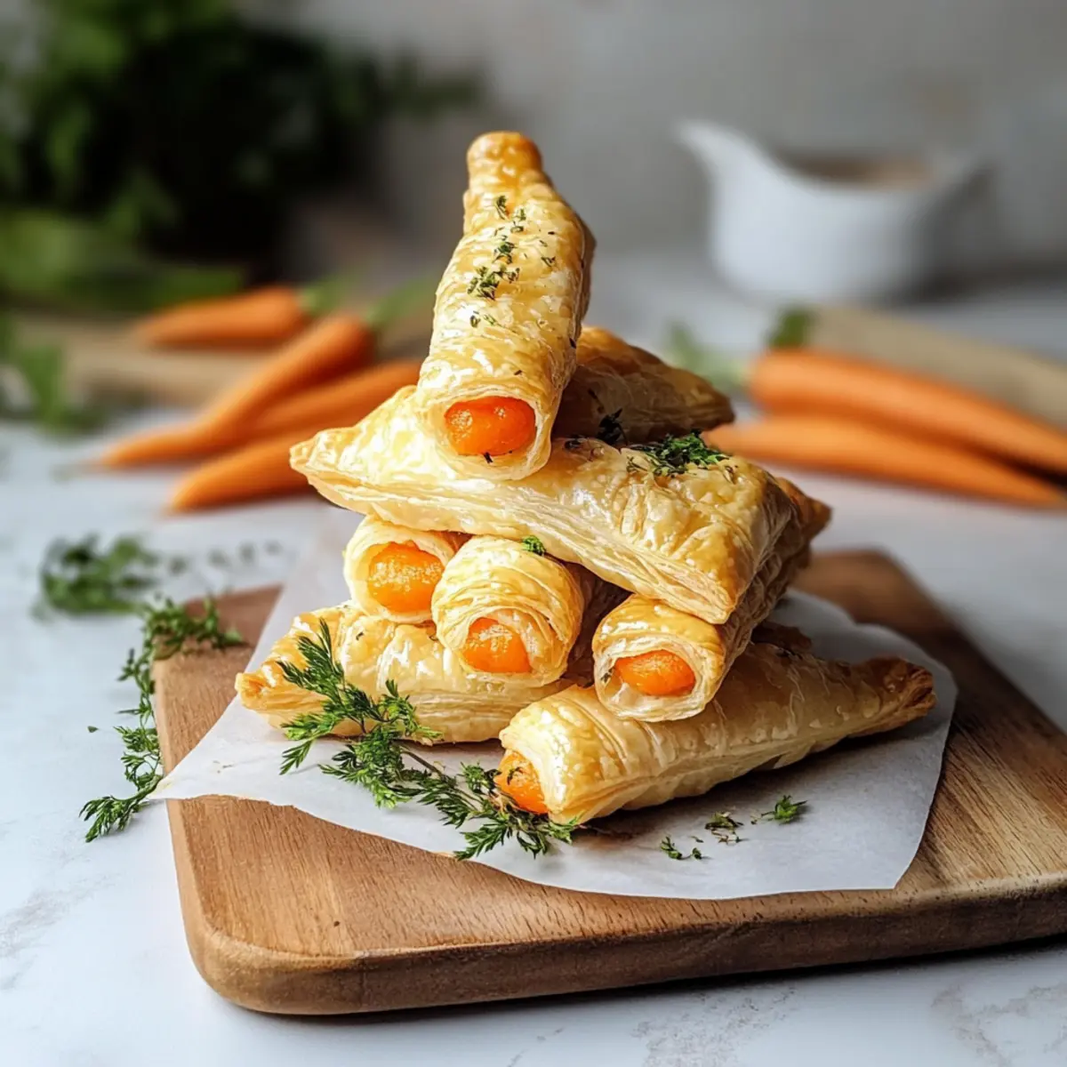 Einzigartigkeit garantiert: Diese Blätterteigkarotten sind nicht nur ein visueller Blickfang, sondern auch ein wahrer Gaumenschmaus.