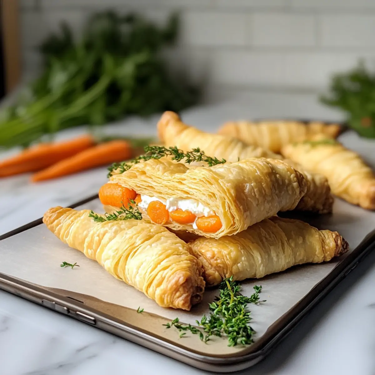 Schritt-für-Schritt-Anleitung für Blätterteigkarotten mit Frischkäsefüllung