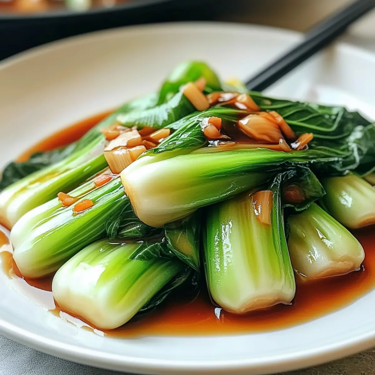 - Übertrage den fertig gegarten Bok Choy mit Austernsauce auf einen Teller und serviere ihn sofort.