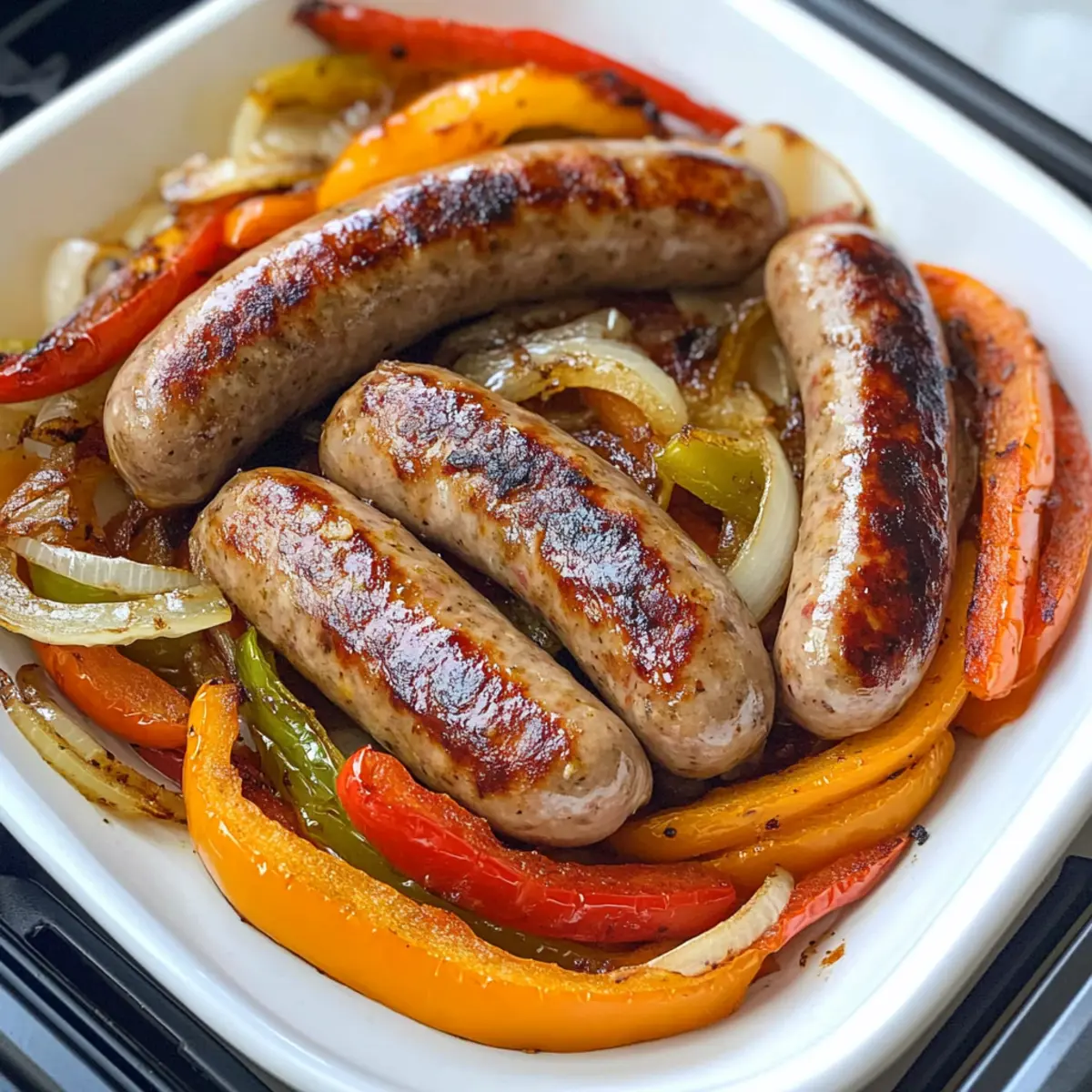 Schritt-für-Schritt-Anleitungen für Bratwürste im Heißluftfryer mit Paprika und Zwiebeln