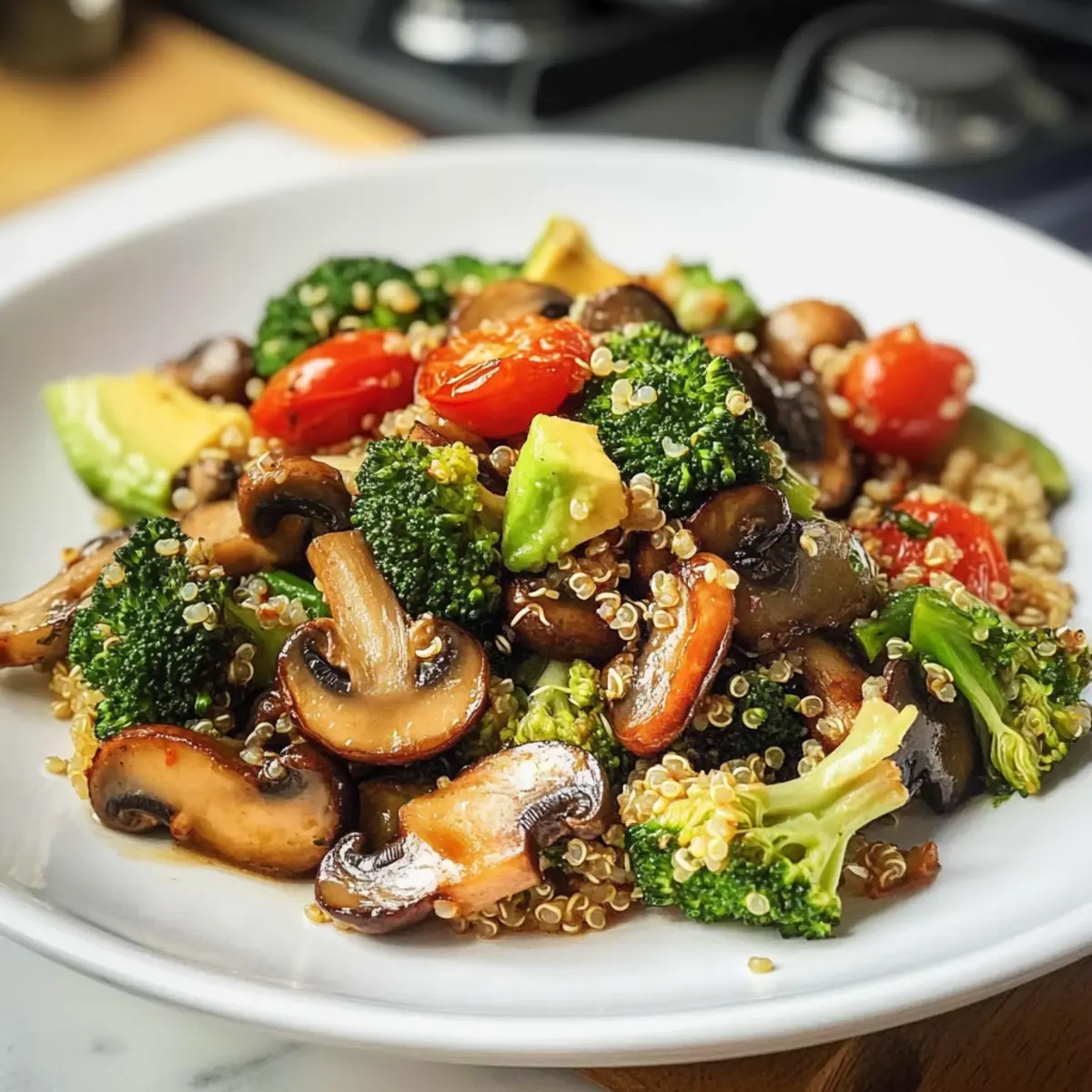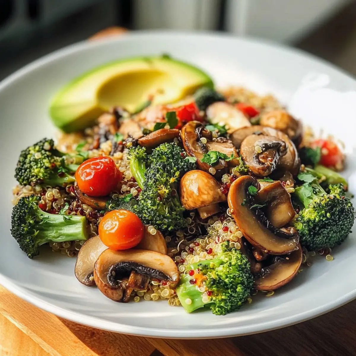 - Kochzeit beachten: Überkoche das Gemüse nicht, damit es knackig bleibt und die leuchtenden Farben erhält. 5-7 Minuten sind ideal für Brokkoli und Champignons.