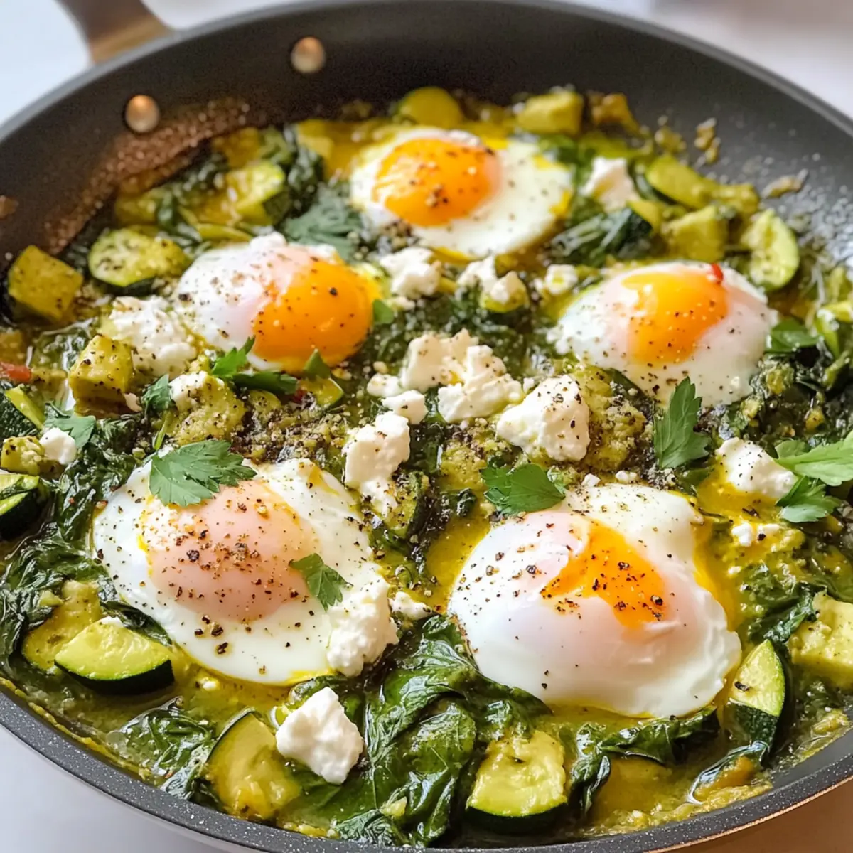 Grüne Shakshuka mit Spinat, Zucchini und Feta Recipe