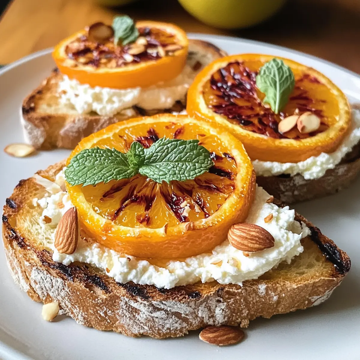Grillierte Orange Geschlagener Ricotta Toasts rezept
