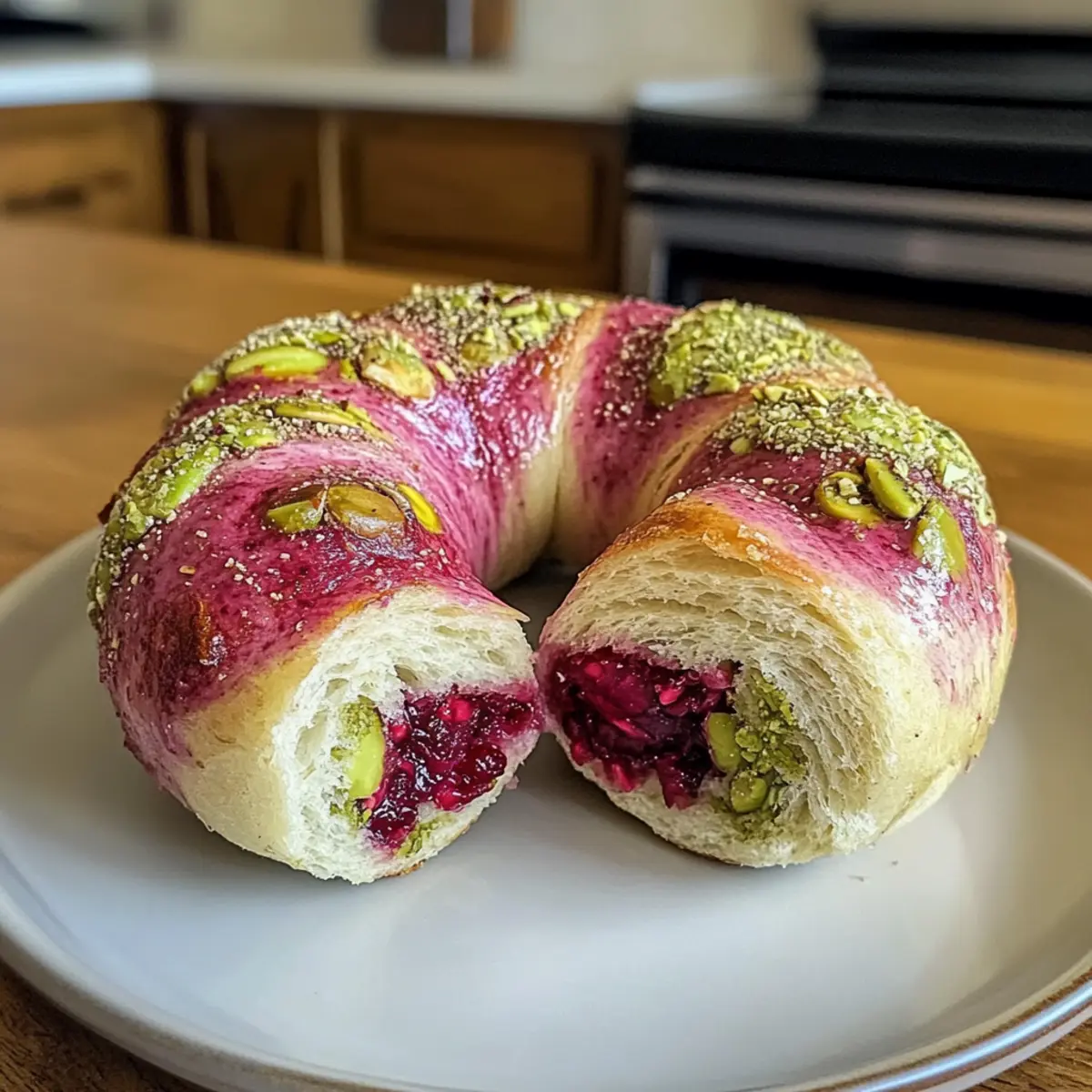 Himbeere Pistazie Sauerteig Bagels selbstgemacht