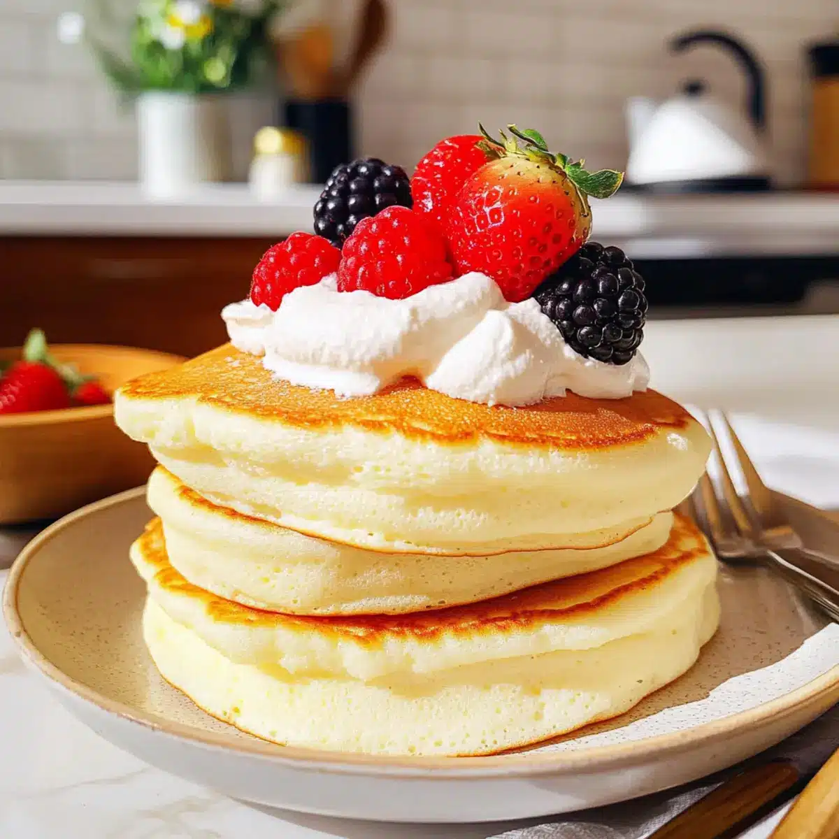 Fluffige japanische Soufflé-Pfannkuchen für dein Frühstück