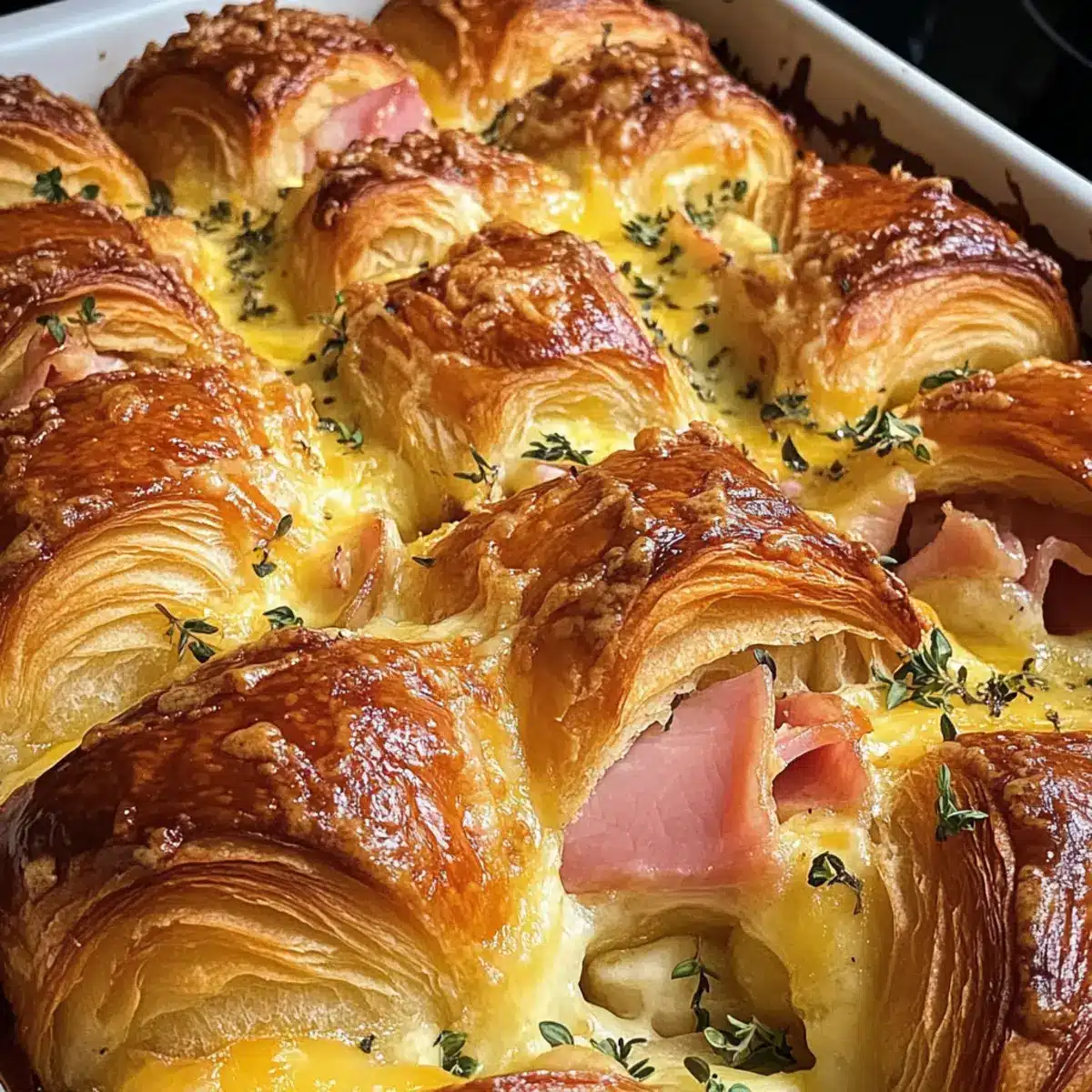 Köstlicher Croissant Auflauf mit Käse und Schinken