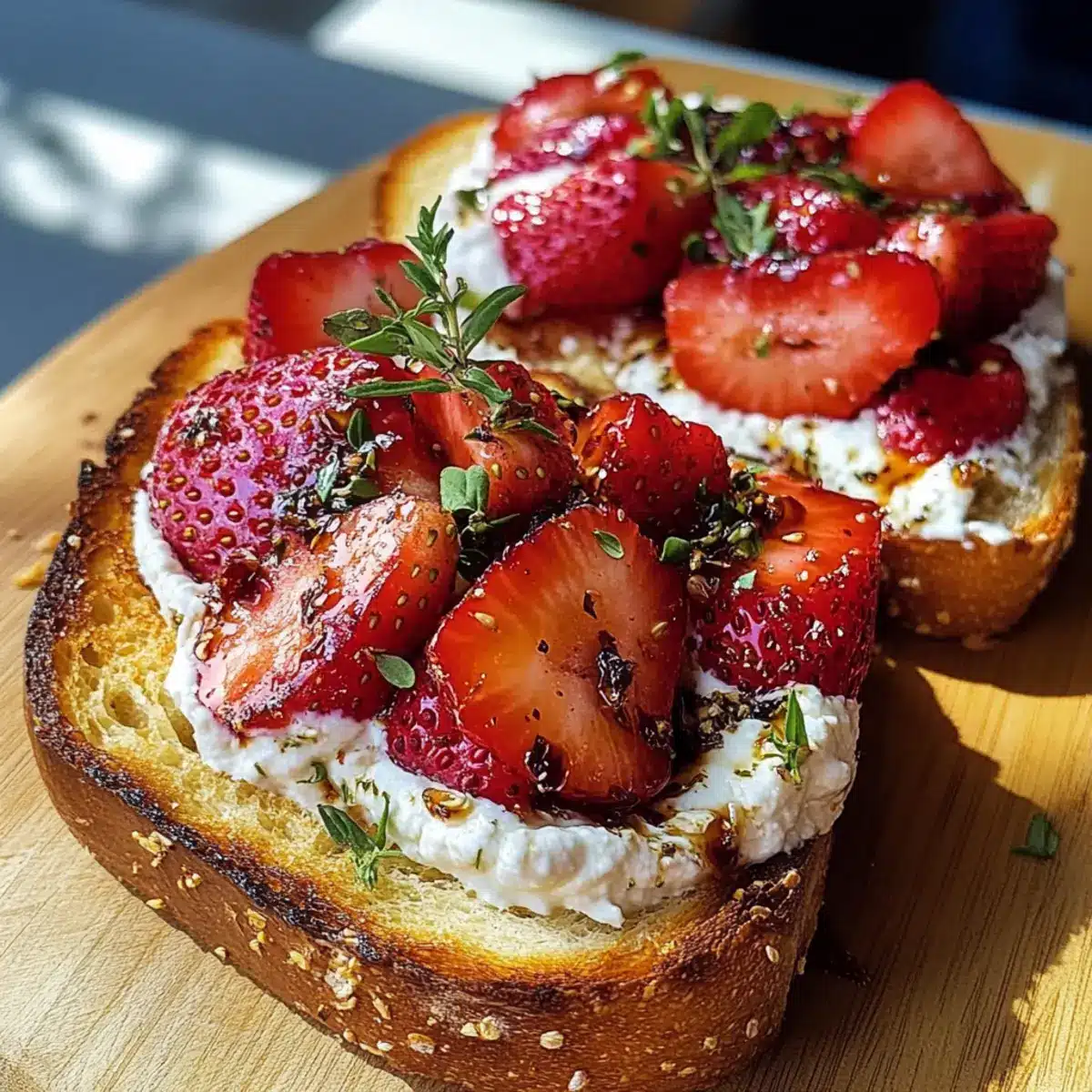 Geröstetes Erdbeer-Sahne-Ricotta-Toast selbst gemacht