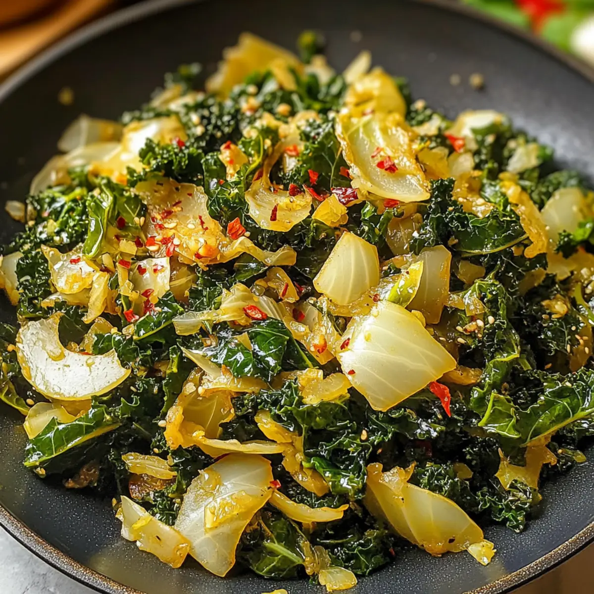 Knoblauch angebratener Kohl Grünkohl Pfanne für Genießer
