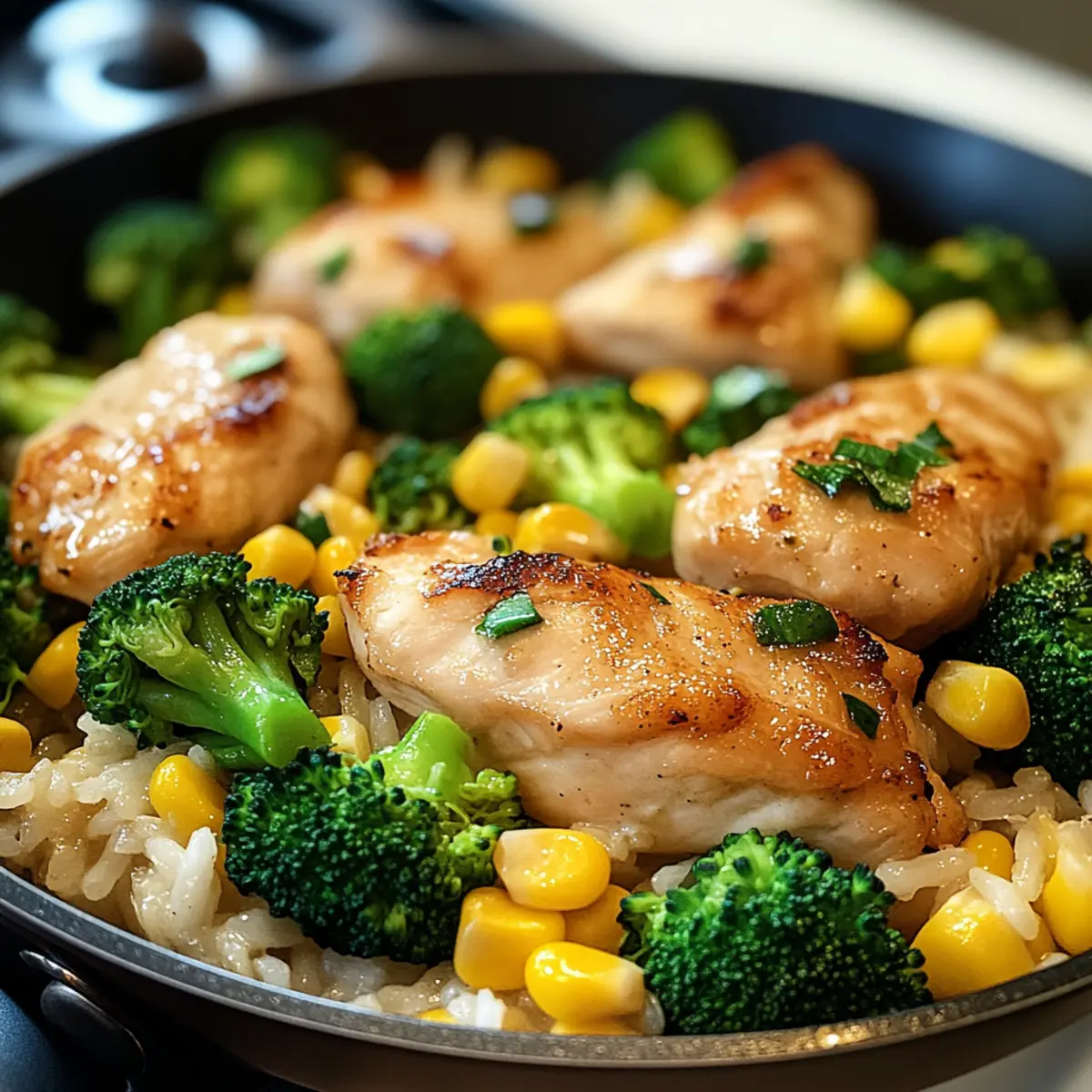 Pfanne mit Brokkoli und Mais für die ganze Familie