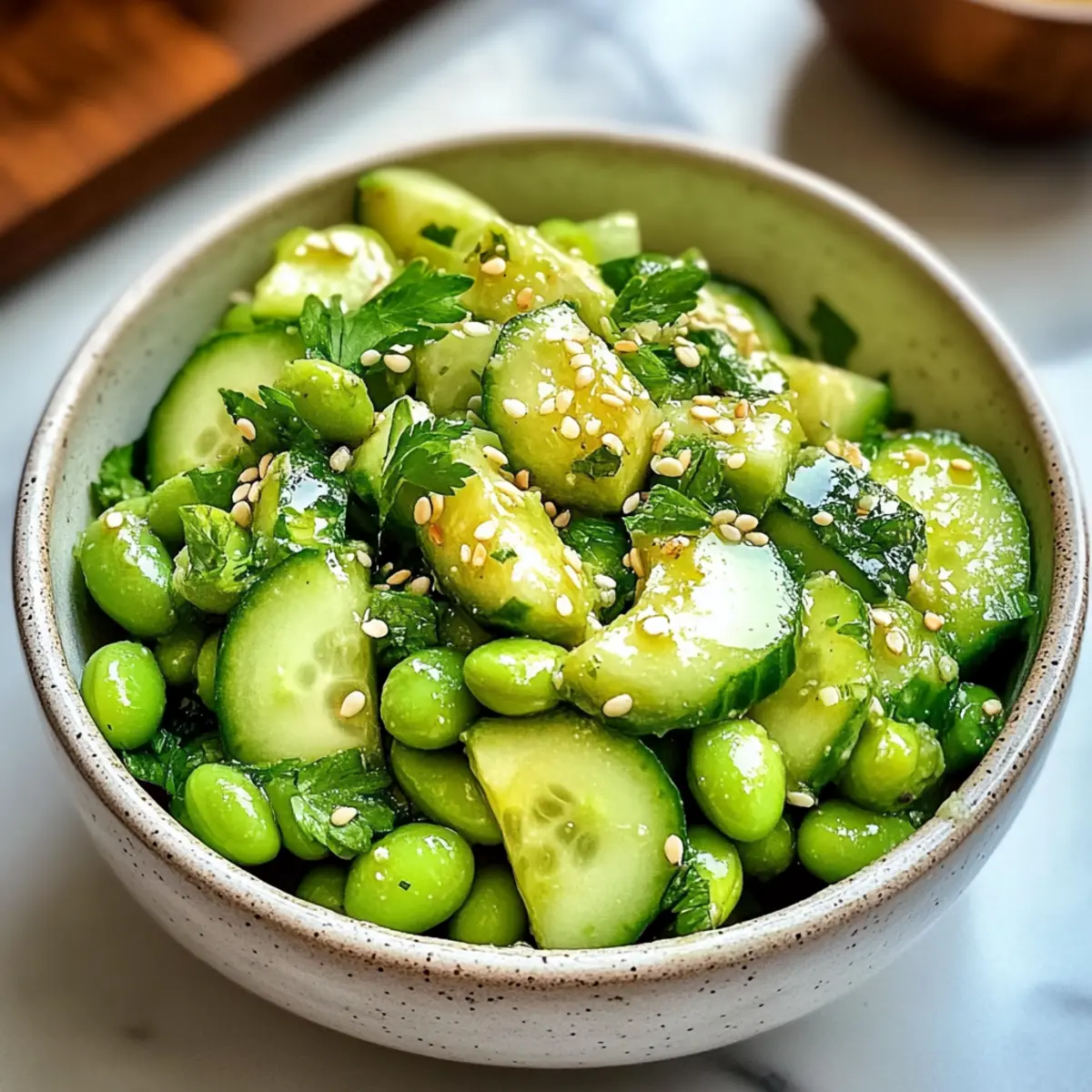 Gurken Edamame Salat mit Sesam-Ingwer Dressing