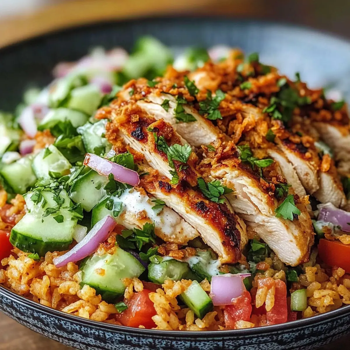 Hühnchen Shawarma Crispy Reis Salat gesund genießen