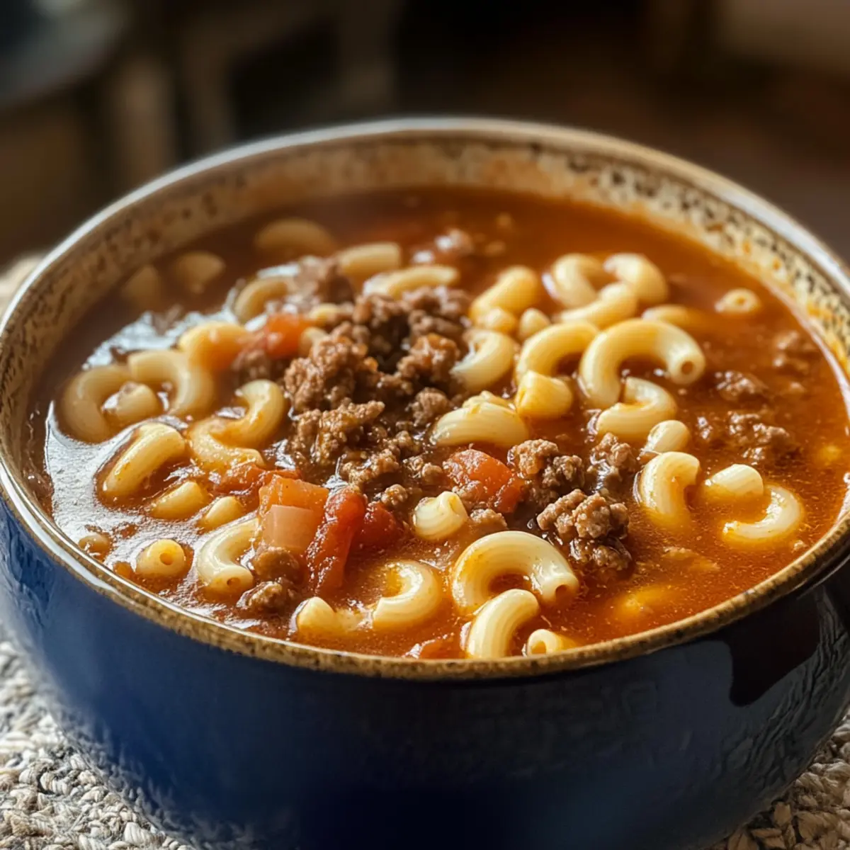Rindfleisch- und Macaroni-Suppe für Gemütliche Abende