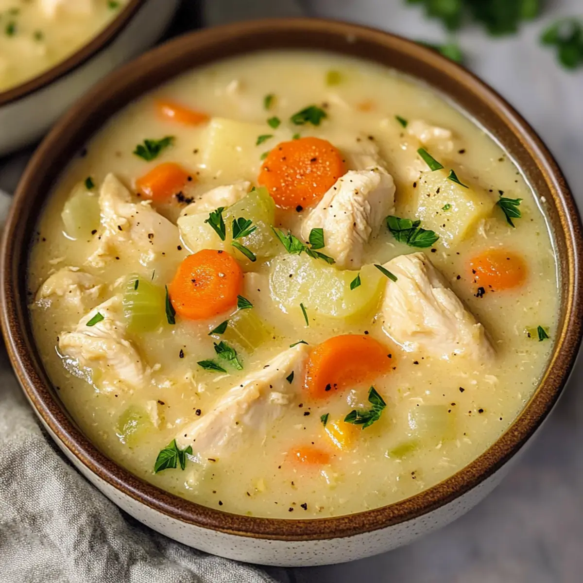 Hühnchen Topf Kuchen Suppe für kuschelige Abende