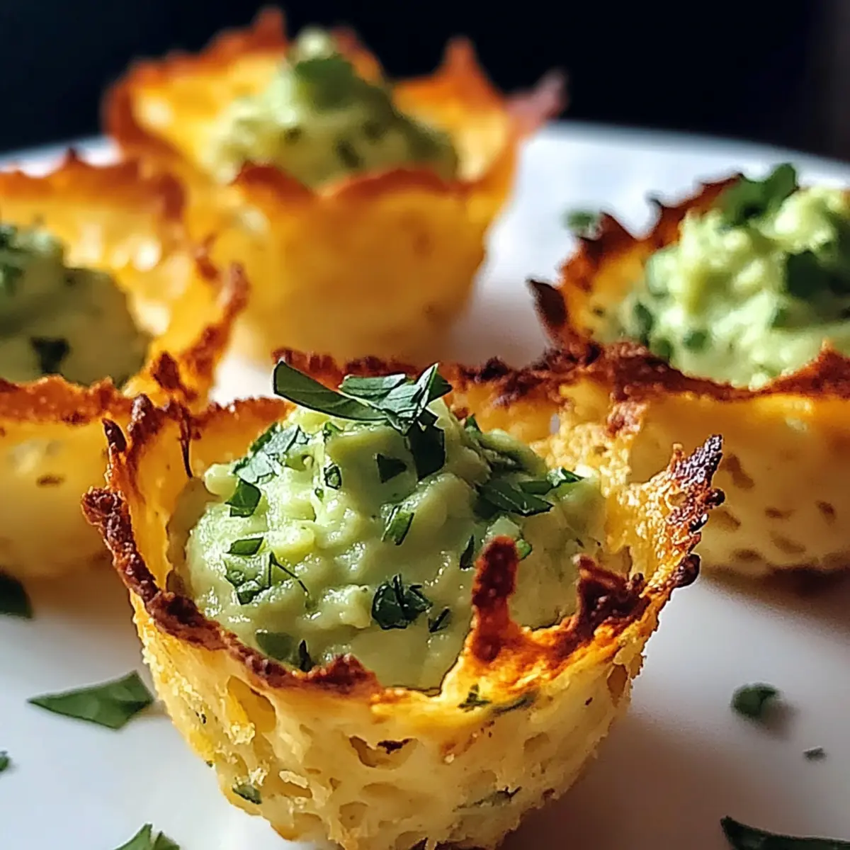 Cheddar-Tassen mit Avocado-Feta-Mousse schnell genießen