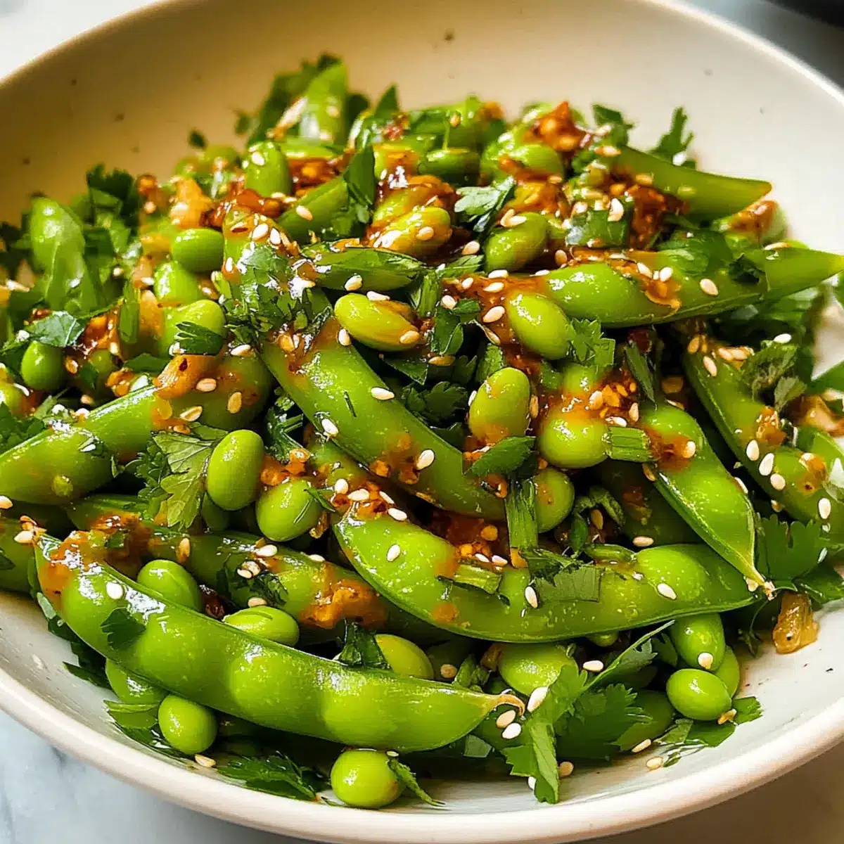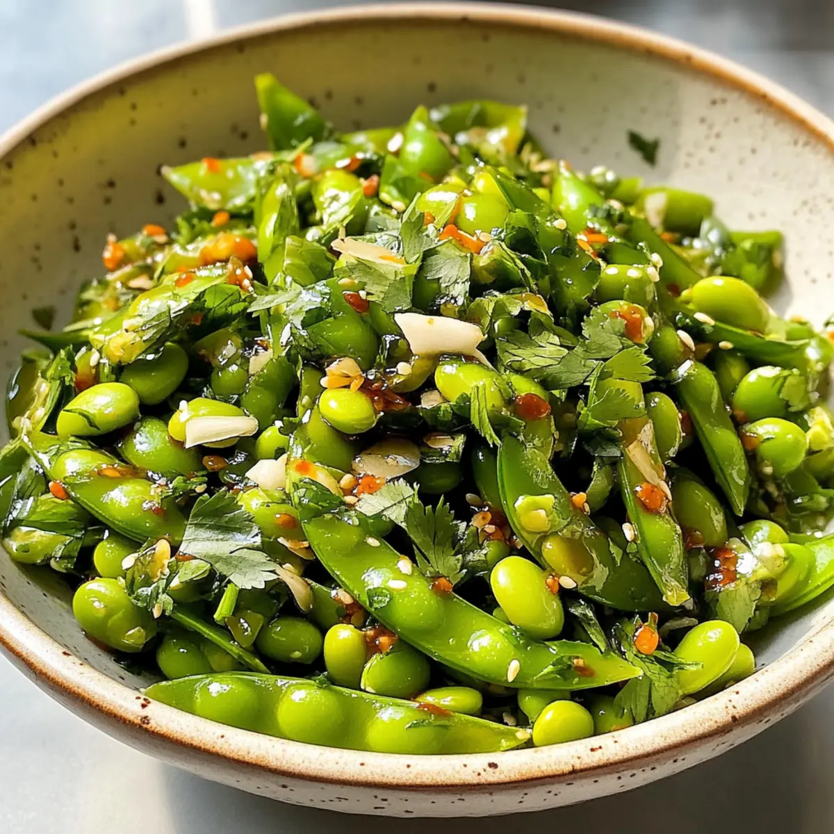 Mit jedem Biss in diesen Chili-Knusper-Erbse-Salat spüre ich den frischen Frühlingsduft, der durch die knackigen Erbsen und den cremigen Edamame weht. Diese Kombination aus leichten, gesunden Zutaten macht ihn perfekt für die warmen Tage, an denen wir nach etwas Erfrischendem hungern. Der Salat ist nicht nur schnell zubereitet, sondern wird auch vom süß-scharfen Chili-Crisp-Dressing veredelt, das jedem Teller eine aufregende Note verleiht. Ob als leichte Mittagessen oder Beilage zu deinen Lieblingsgerichten – dieser Salat hat all das, was du brauchst, um deine Geschmacksknospen zu verwöhnen! Welches Gericht wirst du als nächstes zu deinem neuen Lieblingssalat kombinieren?
