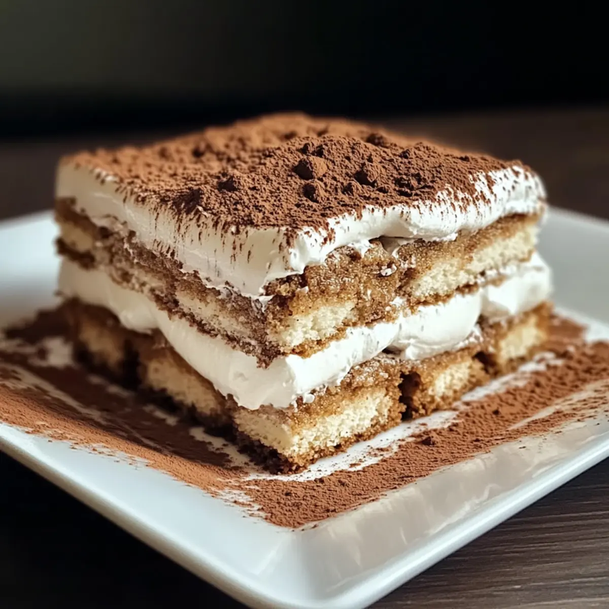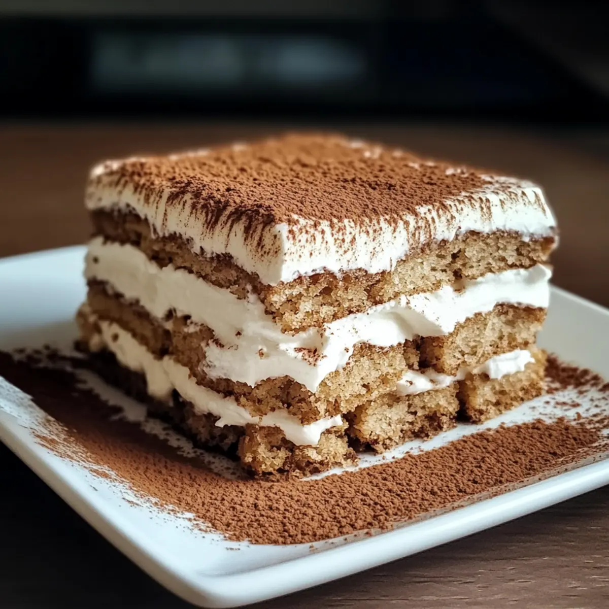 Vor dem Servieren: Stauben Sie das Tiramisu kurz vor dem Servieren mit Kakaopulver ab, um das Geschmackserlebnis und die Präsentation zu verbessern.