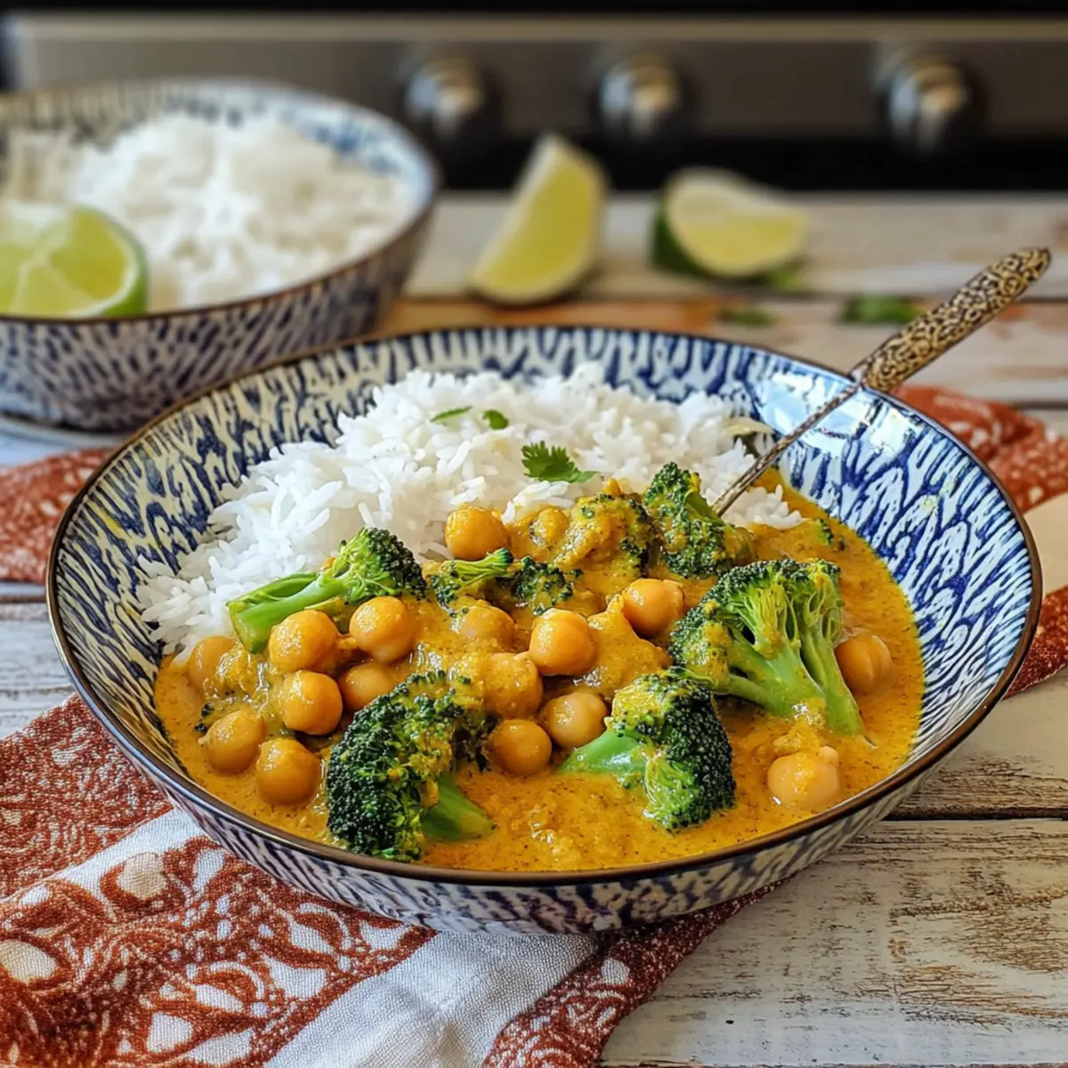 Dieses thailändische Curry mit Kichererbsen und Reis