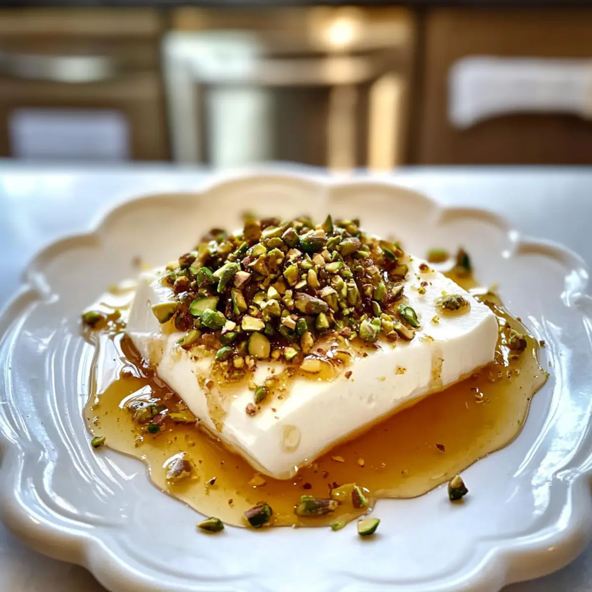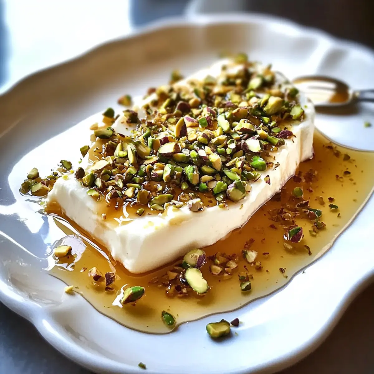 Eleganter Boursin-Käse-Aperitif mit Honig und Pistazien