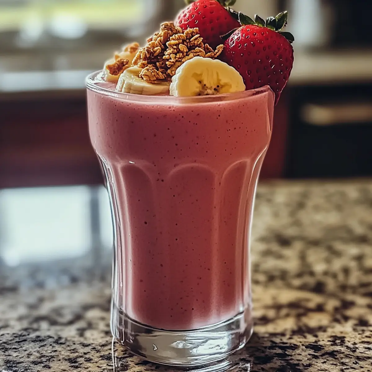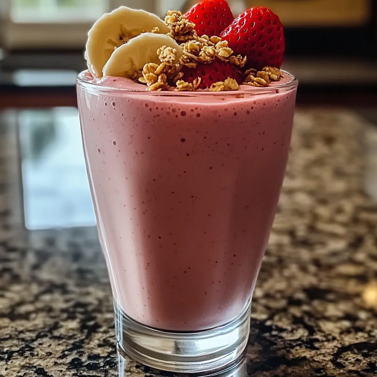 Gesund und nahrhaft: Mit reifen Bananen und Erdbeeren liefert er wichtige Vitamine und Nährstoffe, die Ihren Tag beleben.