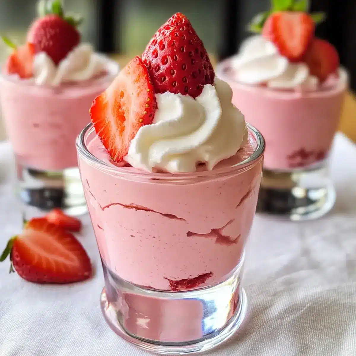 Verführung in jedem Bissen: Die himmlische, luftige Textur dieser Mousse schmilzt förmlich im Mund. Deine Gäste werden von dem frischen Erdbeergeschmack begeistert sein!