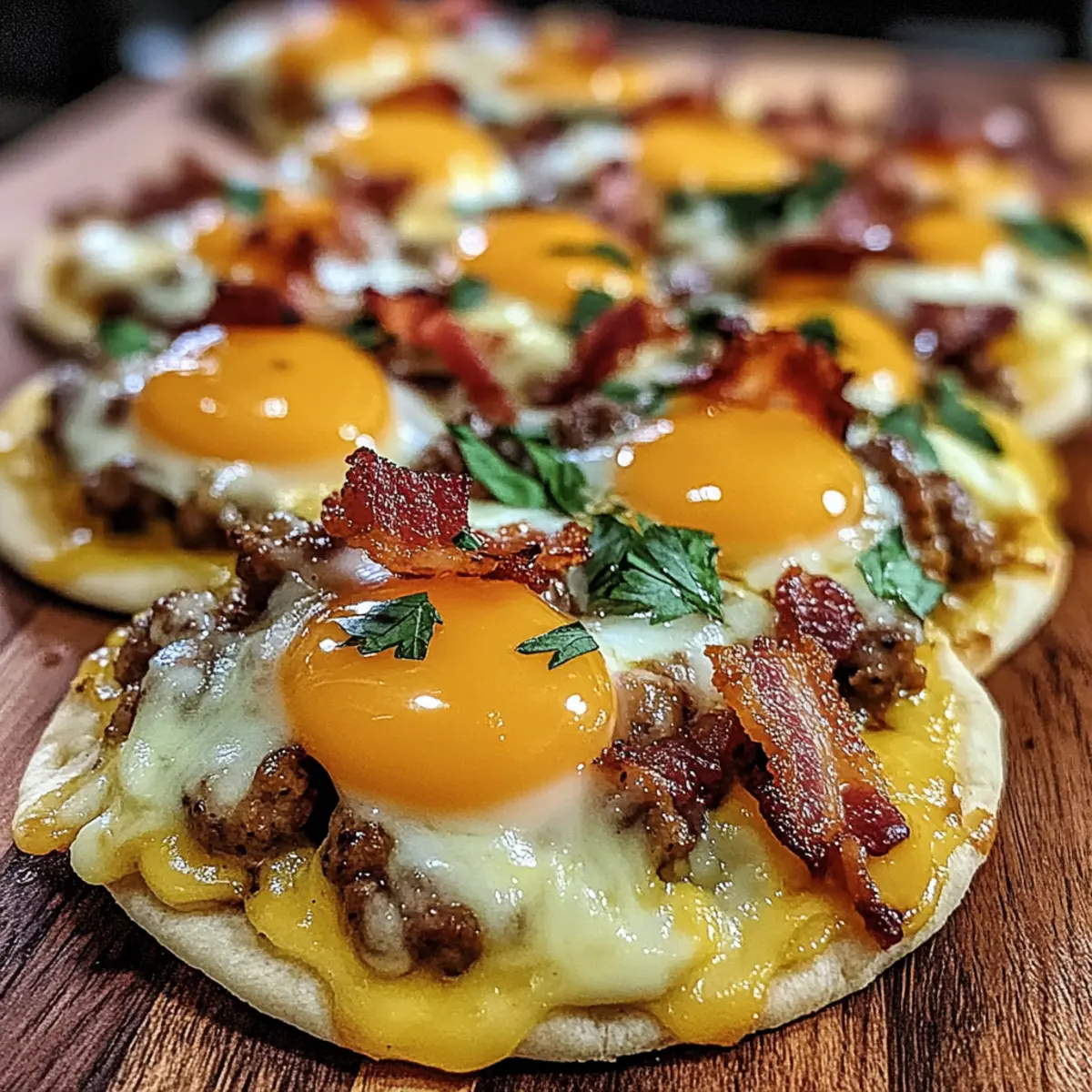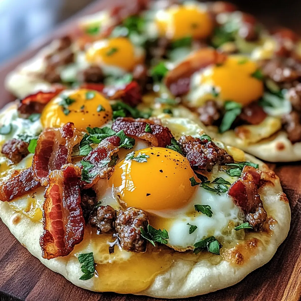 Knusprige Toppings: Garniere die Fladenbrote mit knusprigem Speck oder Zwiebelringen für einen texturalen Unterschied. Diese kleinen Änderungen bringen Abwechslung in dein Frühstück!