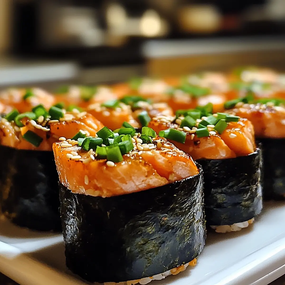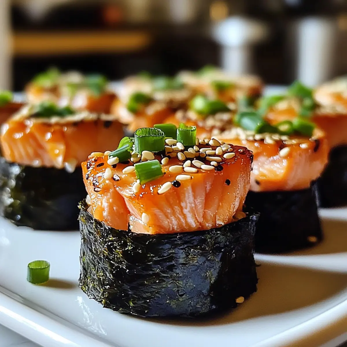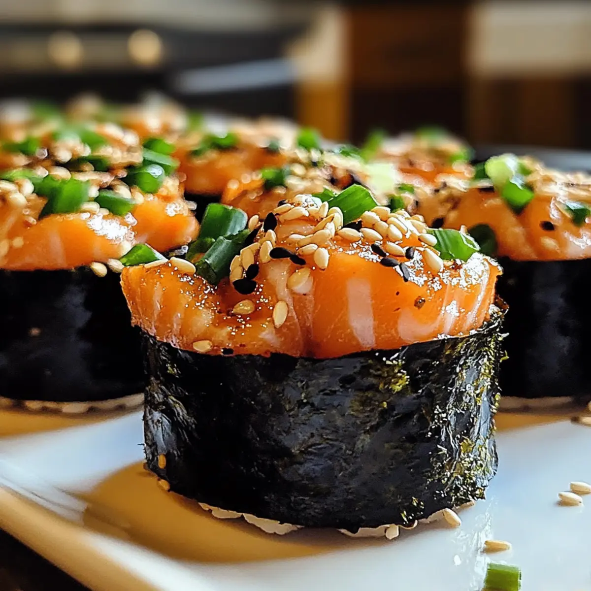 Lass die Tassen nach dem Backen ein paar Minuten abkühlen, bevor du sie vorsichtig aus der Form nimmst. Bestreue sie nach Belieben mit Sesamsamen für zusätzlichen Crunch. Serviere die Frittierte Lachs Sushi-Becher warm und genieße den köstlichen Duft, während du sie zu einem festlichen Snack für Familie und Freunde machst.