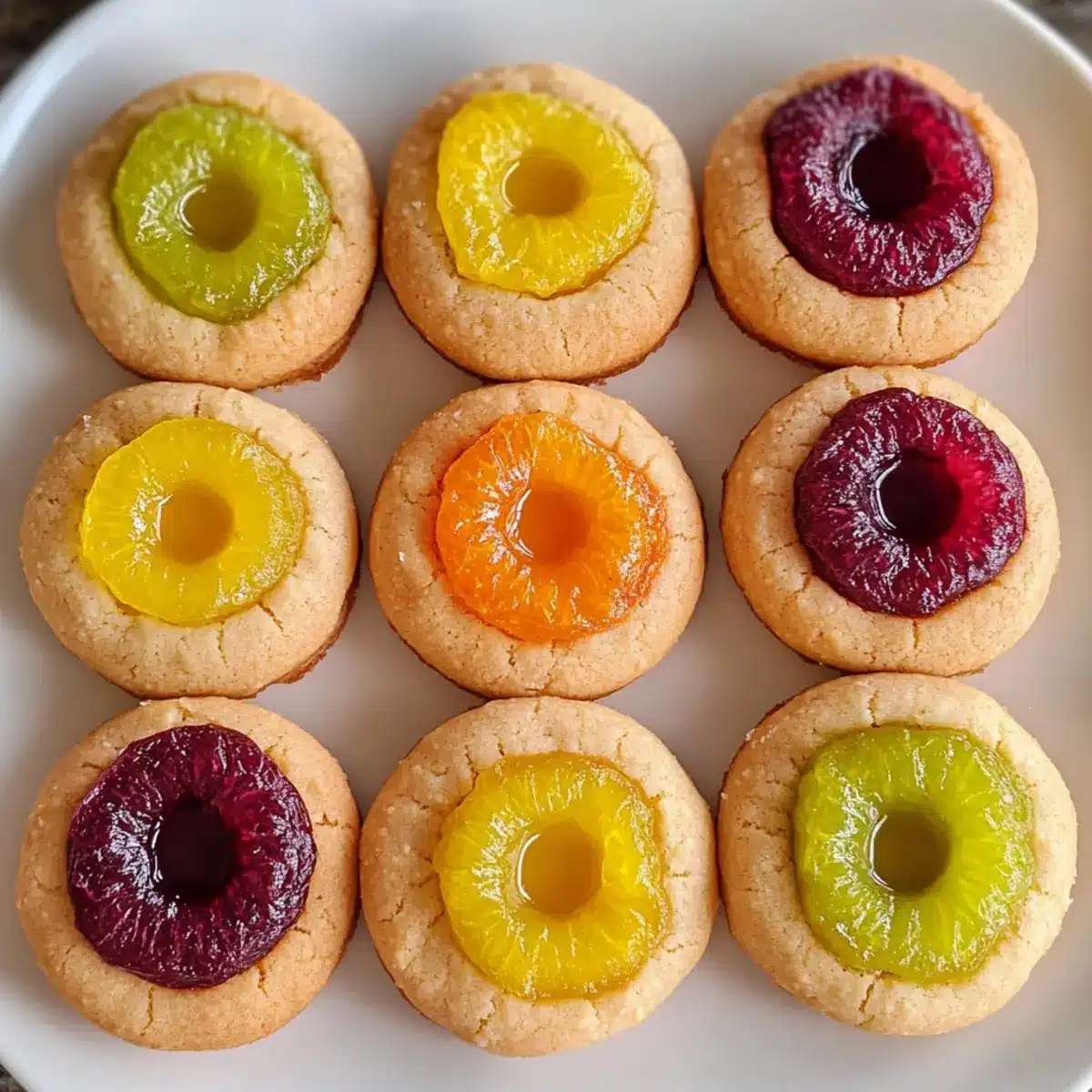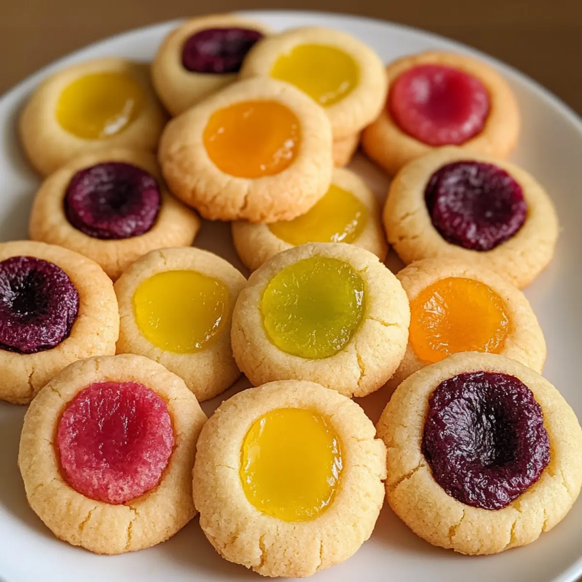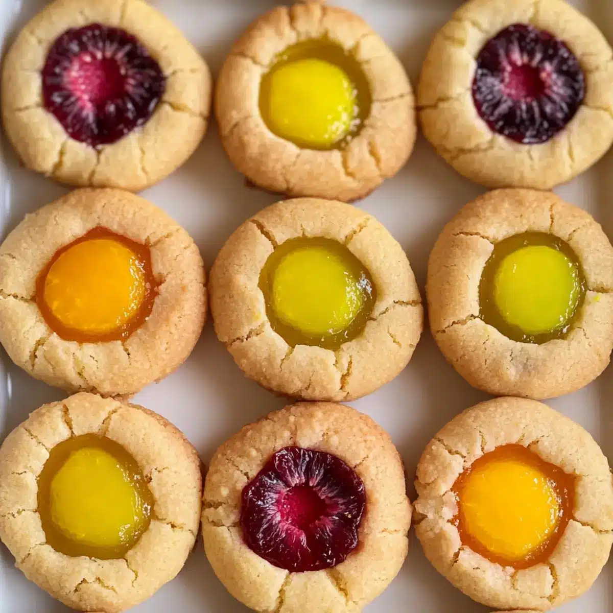 Fruchtgefüllte Daumenprint-Kekse für den Frühling