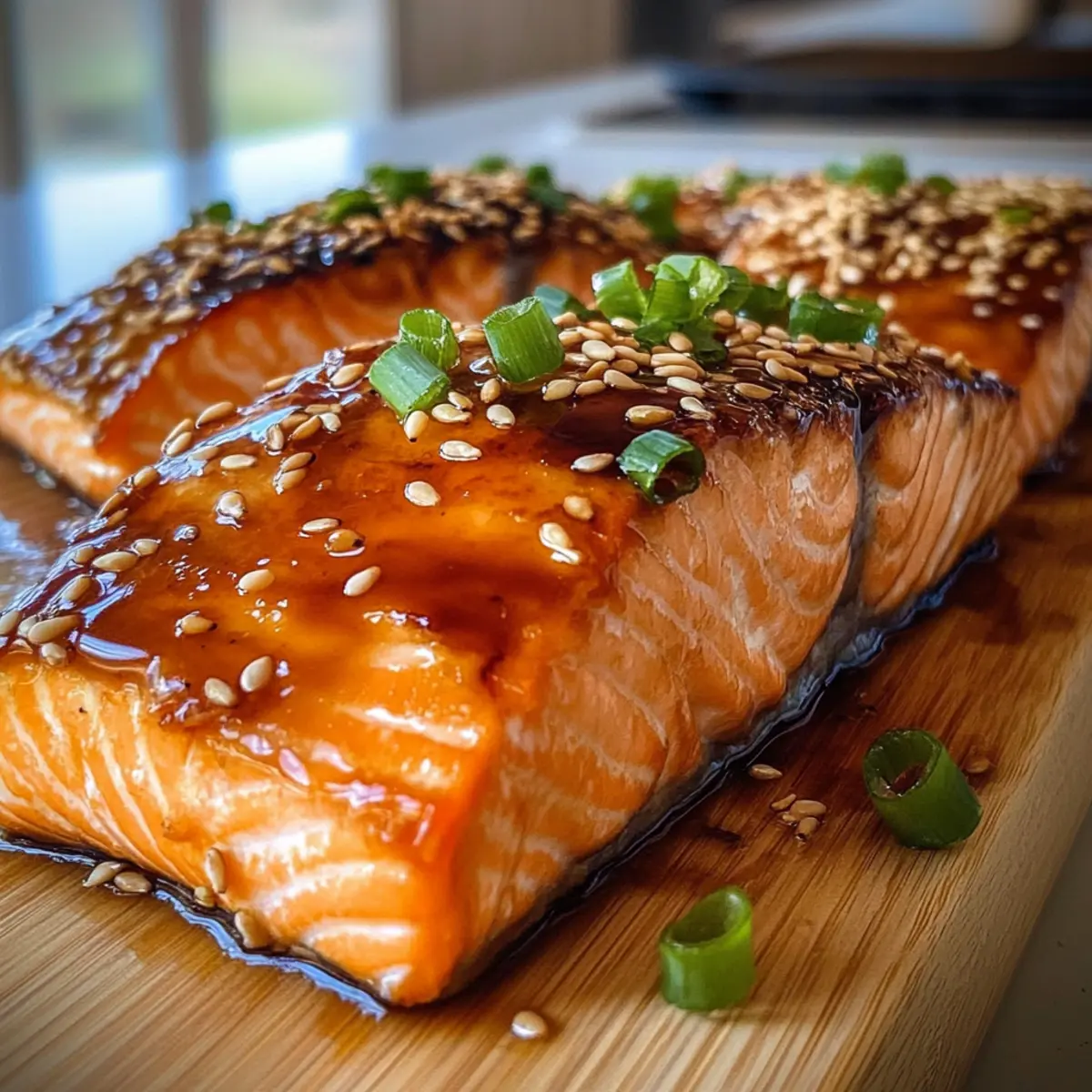 Nach dem Backen nehmen Sie den Lachs aus dem Ofen und bestreichen ihn erneut mit der restlichen Glasur. Dies sorgt für einen intensiven Geschmack und eine glänzende Oberfläche. Garnieren Sie den gebackenen Miso-glasierten Lachs mit fein gehackten Frühlingszwiebeln und Sesamsamen, um dem Gericht einen letzten, dekorativen Schliff zu verleihen.