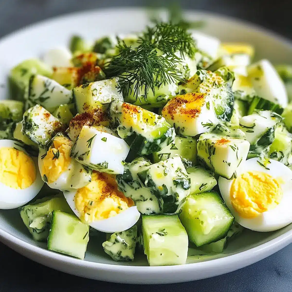 Frische Kombination: Mit knackigen Gurken und cremigen Eiern ist dieser Salat ein wahrer Genuss für die Sinne.