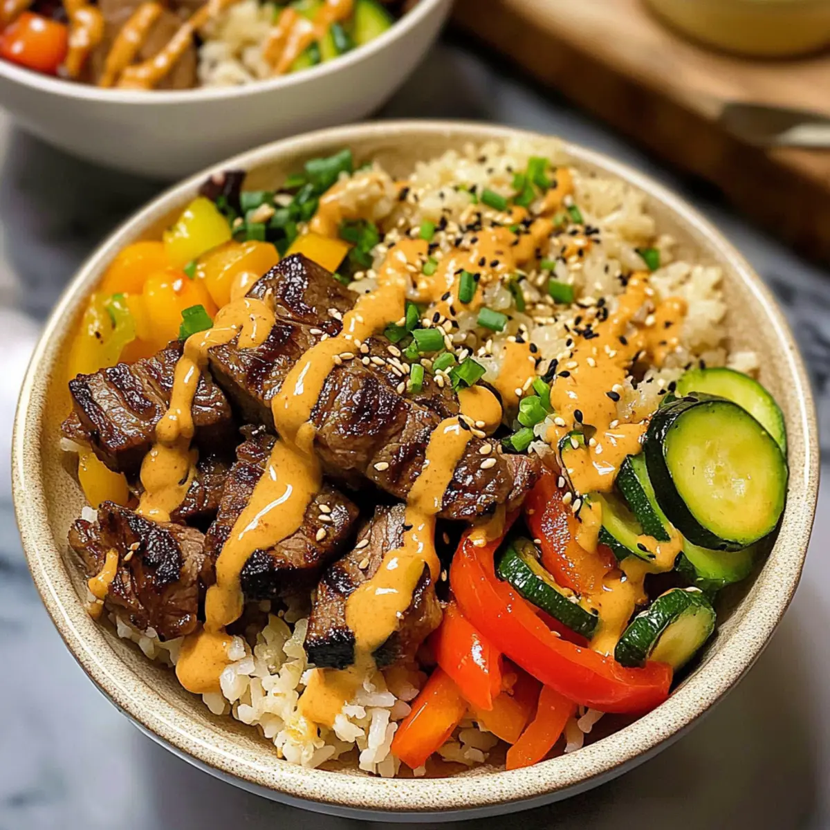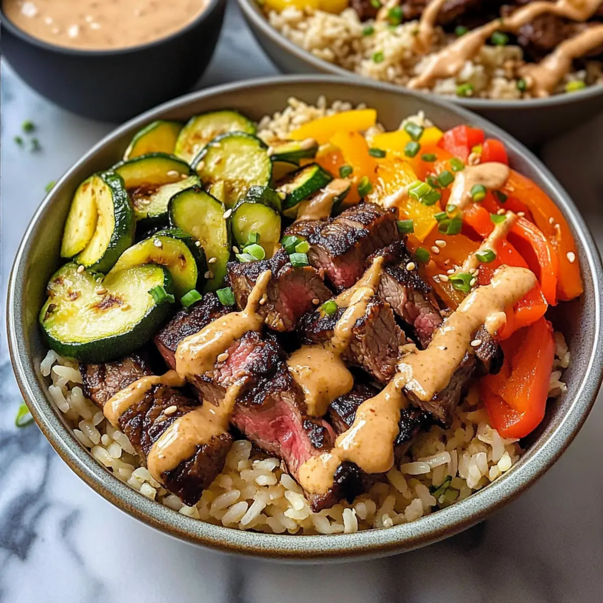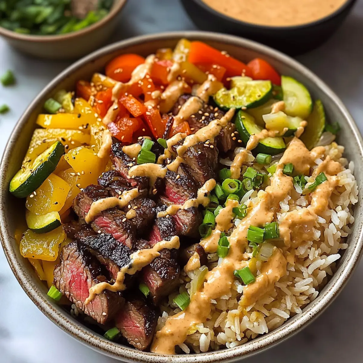 Vegan: Tausche das Steak gegen gebratenen Tofu und die Yum Yum Sauce gegen eine vegane Variante aus, um eine pflanzliche Option zu schaffen.