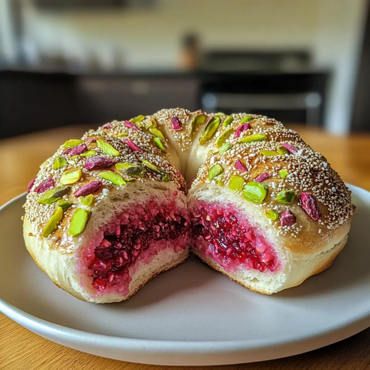 Himbeere Pistazie Sauerteig Bagels selbstgemacht