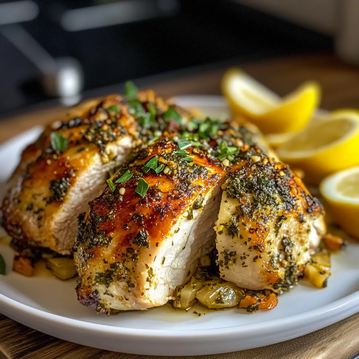 Zitronenüberraschung: Geben Sie einige Zitronenscheiben direkt auf das Hähnchen vor dem Backen – das verleiht eine noch frischere Zitrusnote.