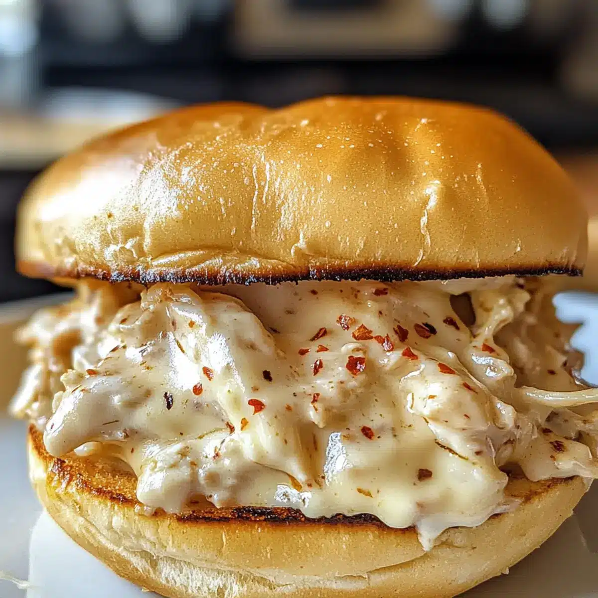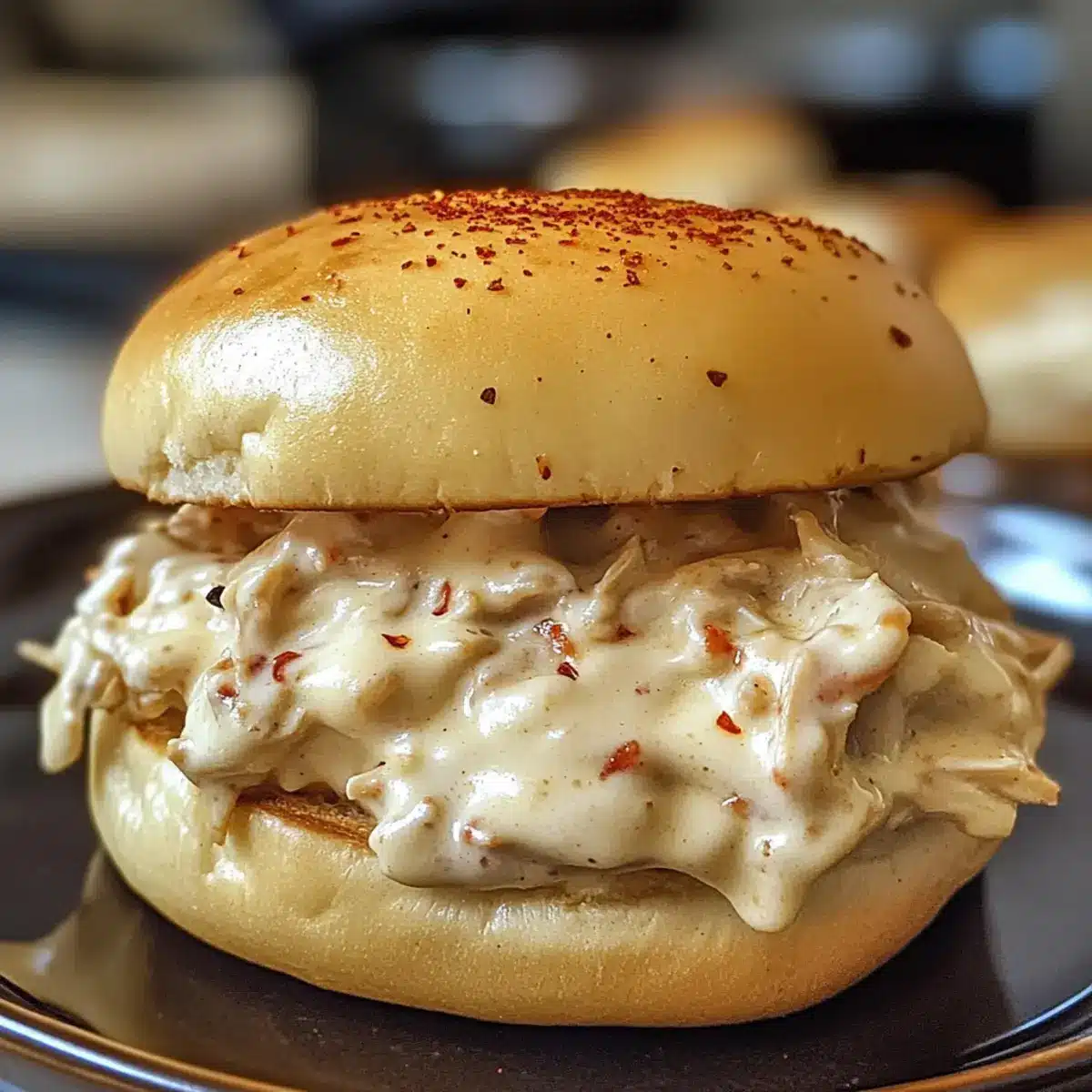- Sandwiches zusammenstellen: Toasten der Brötchen, löffle die Hähnchenmischung auf die Brötchenhälften und serviere warm.