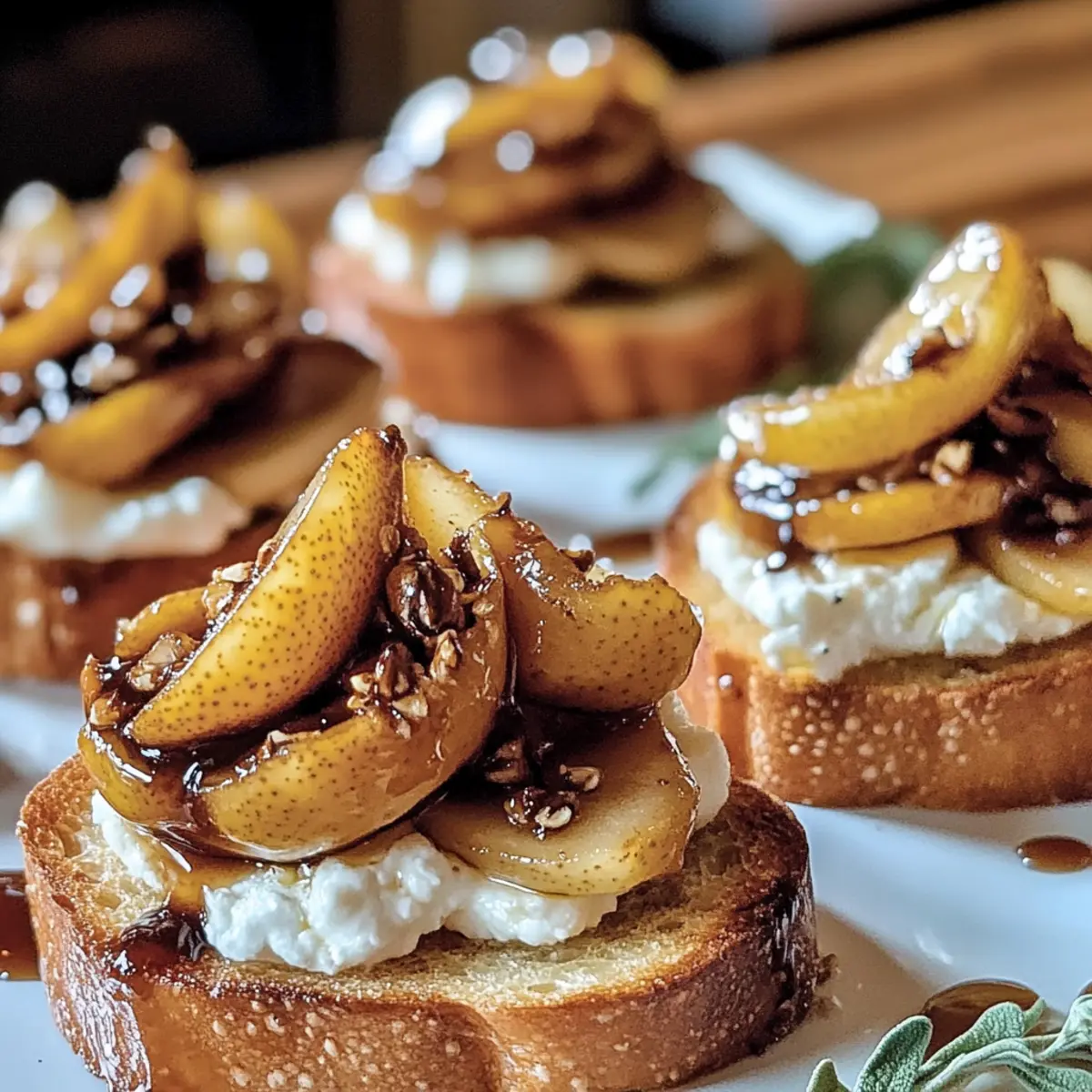 Kostprobe gefällig? Lass die Aromen von Karamellisierte Birnen & Ziegenkäse-Crostini deine Geschmacksnerven verführen!