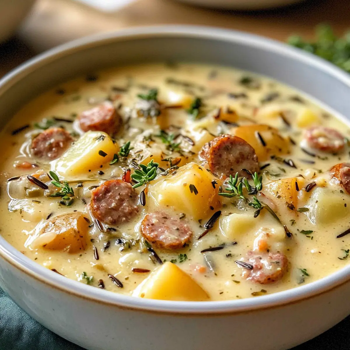 Wurst-Variationen: Probiere verschiedene Wurstsorten aus, um den Geschmack zu variieren. Jede Wurst bringt ihre eigene Note in den Kartoffel- und Wurst-Chowder.