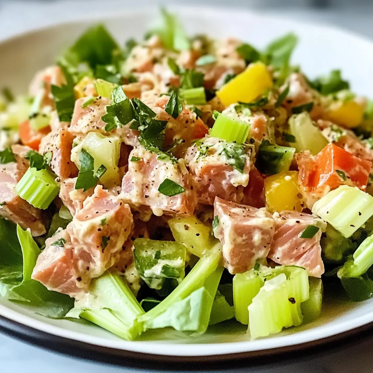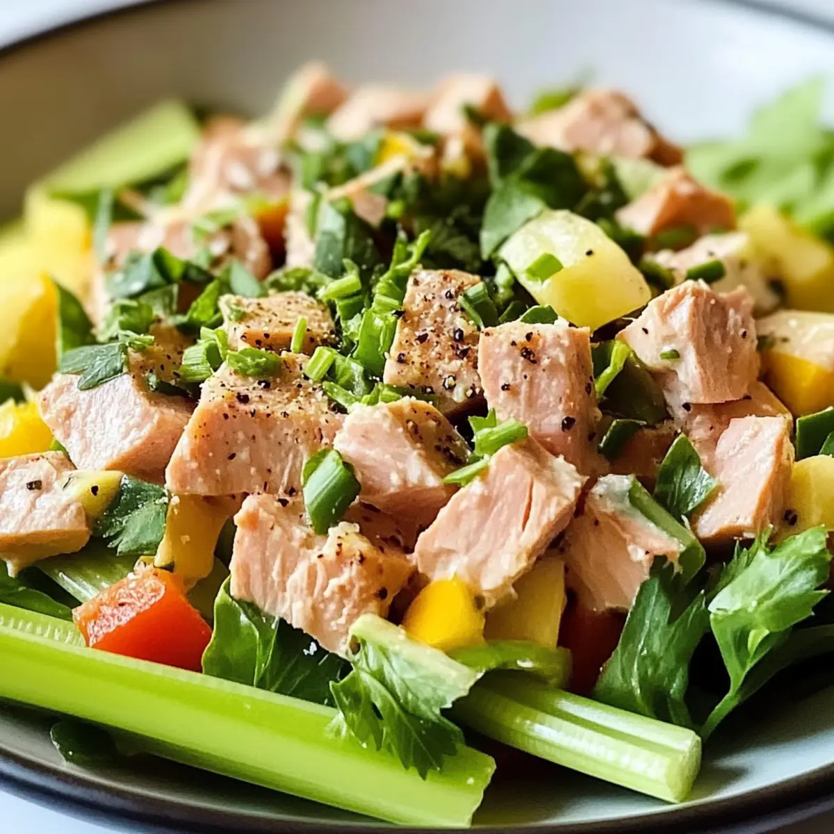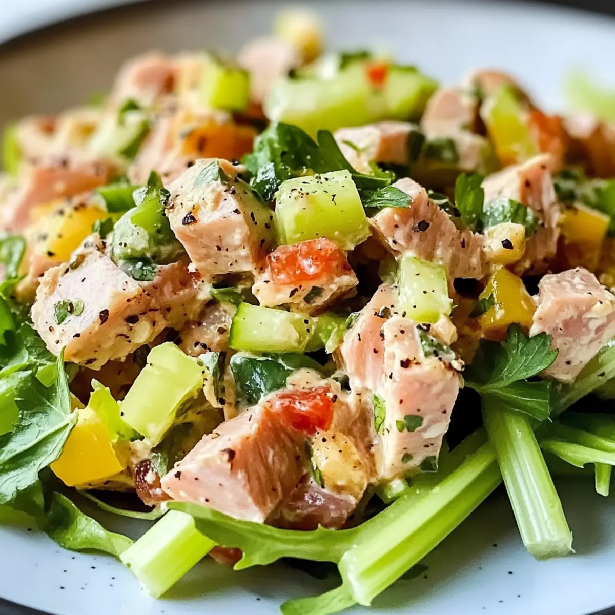 Einfachheit: Mit nur wenigen Zutaten können Sie im Handumdrehen einen nahrhaften Salat zubereiten. Vielseitigkeit: Passen Sie ihn ganz nach Ihrem Geschmack an, indem Sie Zutaten wie Kichererbsen oder gewürfelte Eier hinzufügen! Gesundheit: Diese Mischung ist nicht nur kalorienarm, sondern auch reich an Eiweiß, perfekt für aktive Lebensstile. Frische Aromen: Die Kombination aus frischem Gemüse, Zitrone und Dijon-Senf sorgt für eine Geschmacksexplosion in jedem Bissen. Meal Prep Freundlich: Ideal, um im Voraus zuzubereiten – so haben Sie gesunde Mahlzeiten immer griffbereit! Genießen Sie diesen Salat als gesunde Option zum Mittagessen oder als leckeren Snack – eine echte Bereicherung für Ihre Küche!