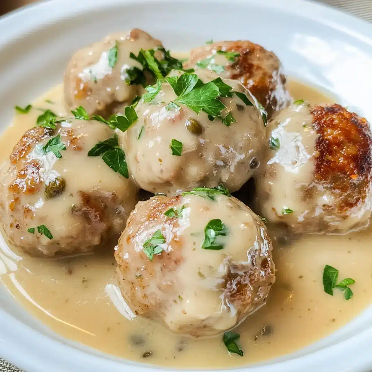 Erlebe den vollmundigen Geschmack, der perfekt harmoniert mit diesen saftigen Fleischbällchen in einer cremigen Kapernsauce.