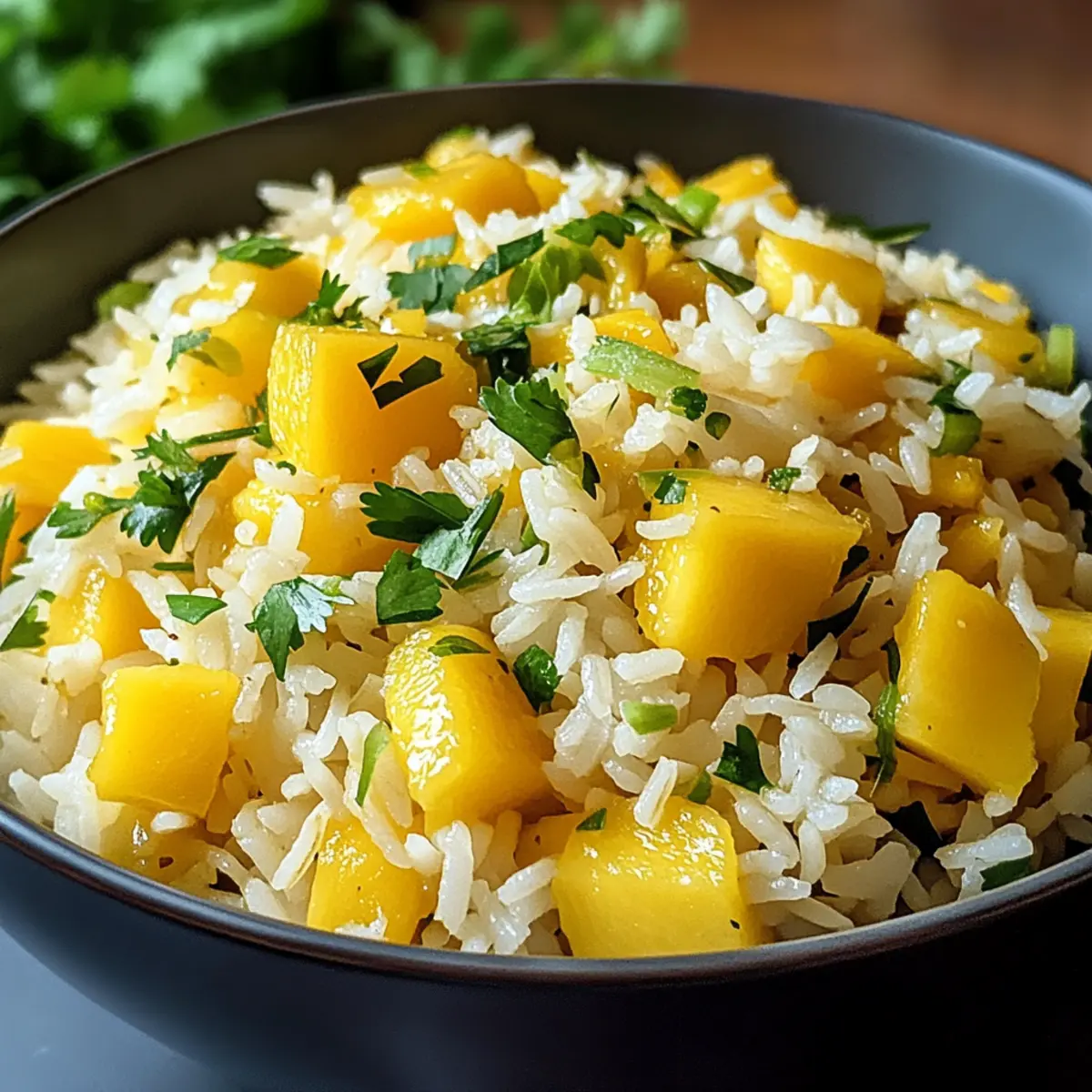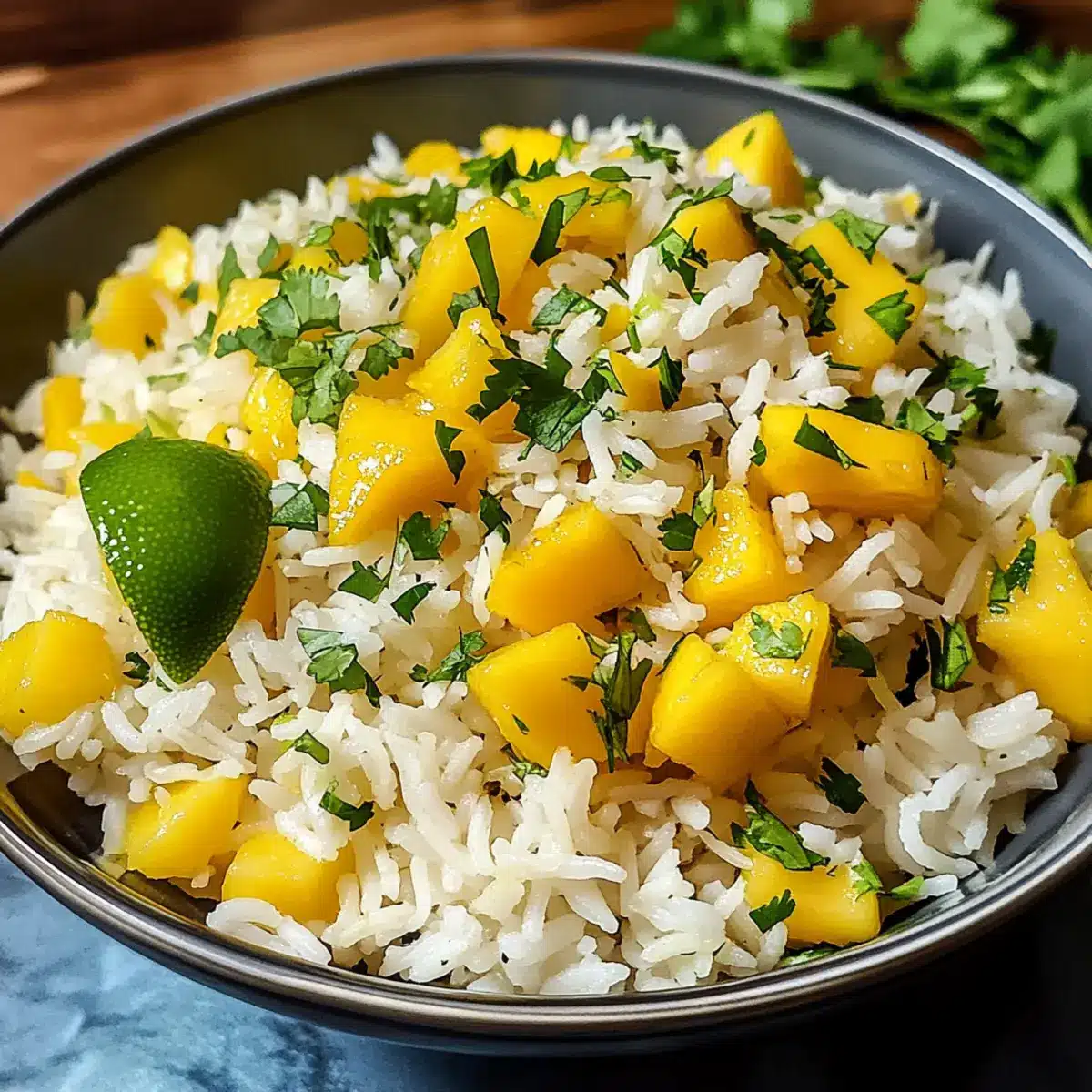 Der Mango-Limetten-Reis ist nicht nur eine Augenweide, sondern auch eine geschmackliche Sensation, die perfekt an einen festlich gedeckten Tisch gehört.