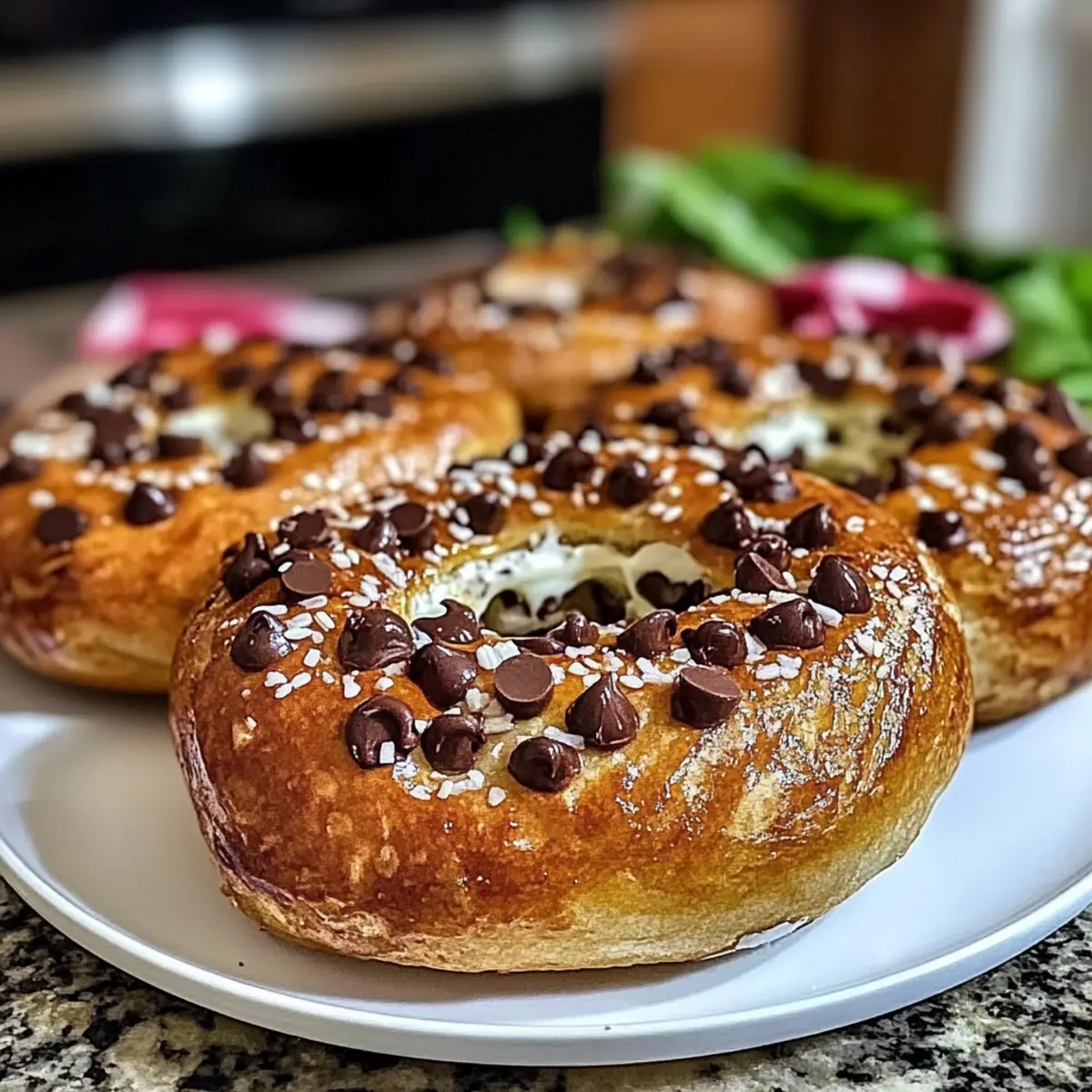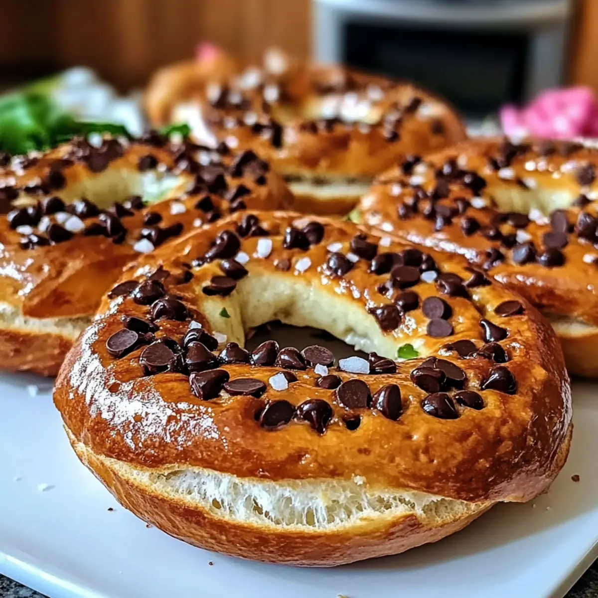 - Zimt-Dreher: Streue Zimt in den Teig für eine würzige Note, die die Schokoladenstückchen wunderbar ergänzt. Ein Hauch von Zimt lässt die Bagels himmlisch duften.
