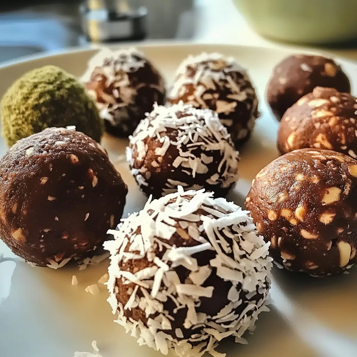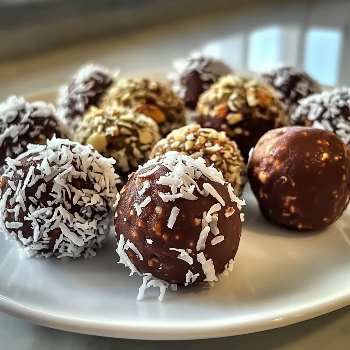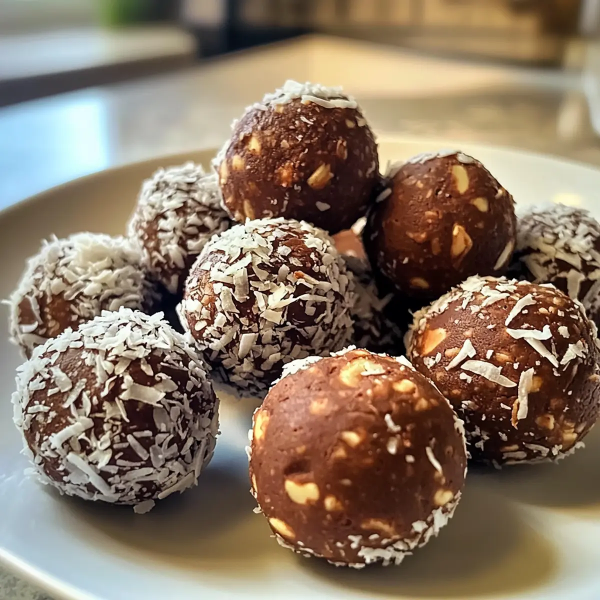 Schokoladengenuss: Ersetze einen Teil des Kakaopulvers durch geschmolzene Zartbitterschokolade für eine intensivere Schokoladennote. Diese Variante verwandelt die Bällchen in einen echten Dekadenzmoment!