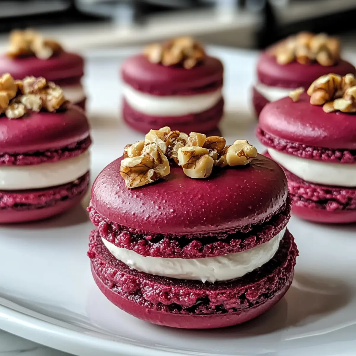 Als ich letztens bei einem eleganten Abendessen saß, konnte ich nicht anders, als die auffälligen Rote-Bete-Makarons mit Ziegenkäse zu bewundern, die zum Servieren bereitstanden. Diese köstlichen kleinen Meisterwerke sind nicht nur eine Augenweide, sondern auch ein aufregendes Geschmackserlebnis. Die knackigen, tiefroten Schalen harmonieren perfekt mit der cremigen Füllung aus würzigem Ziegenkäse und crunchy Walnüssen. Diese Rote-Bete-Makarons sind eine wunderbare vegetarische Vorspeise, die sich schnell zubereiten lässt und jedes Menü aufwertet. Egal, ob für festliche Anlässe oder gemütliche Abende zu Hause – diese feinen Häppchen werden garantiert zum Gesprächsthema. Bist du bereit, deinen Gästen eine unvergessliche Überraschung zu bieten? Lass uns gemeinsam die Geheimnisse dieser raffinierten Makarons entdecken!
