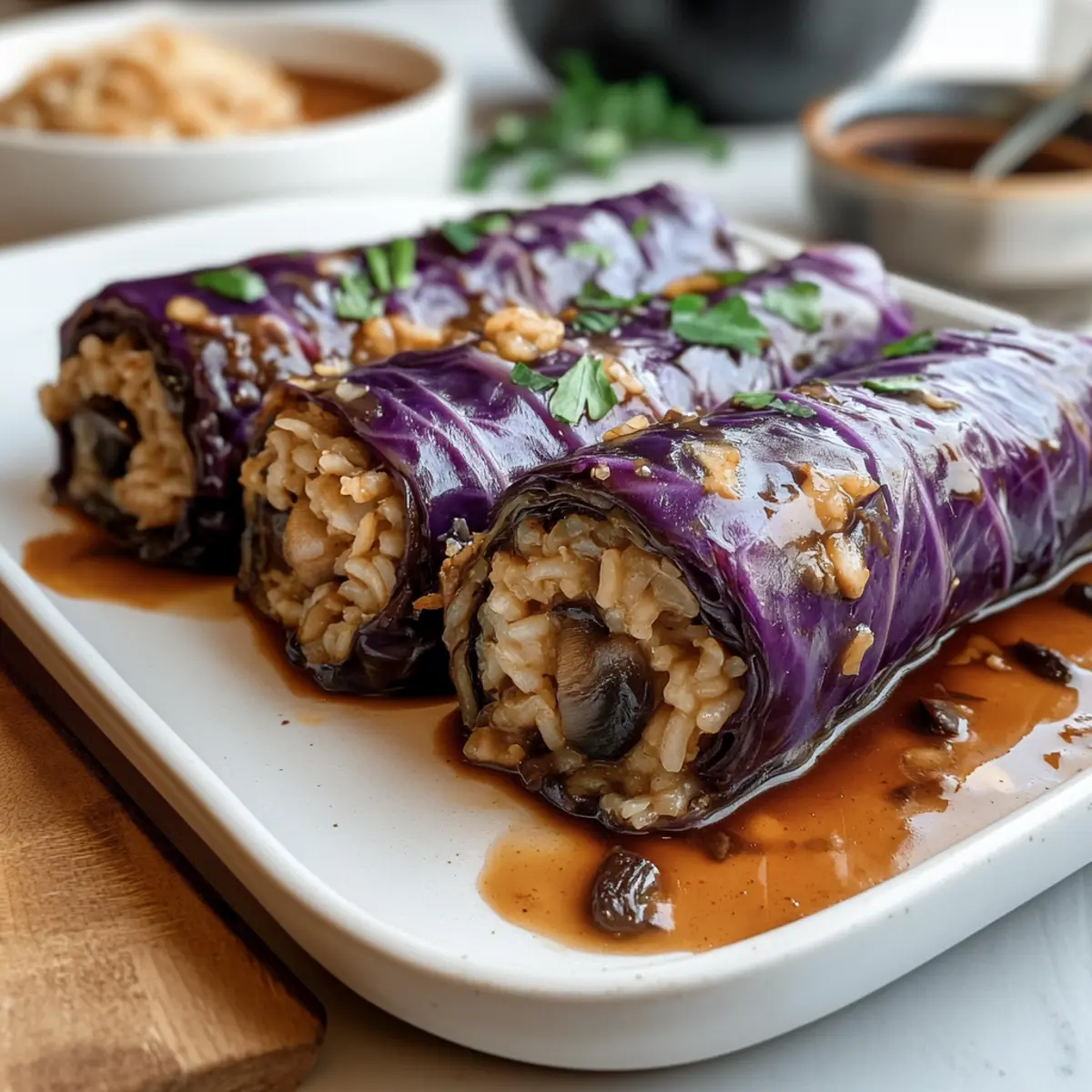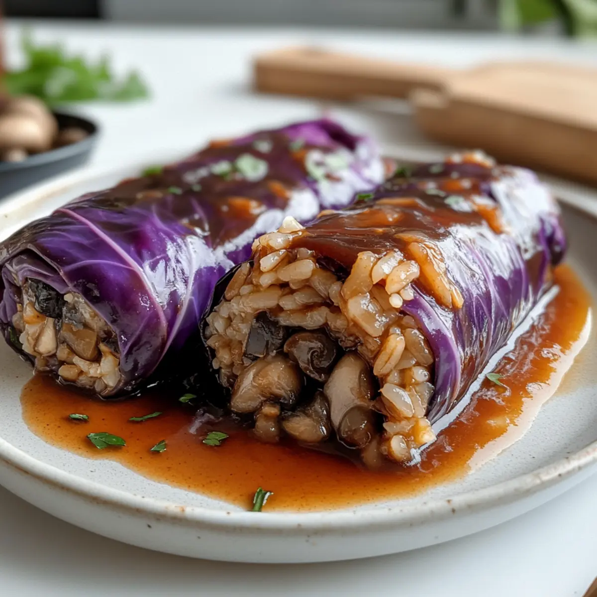 Einzigartig und Festlich: Rotkohlwickel sind nicht nur ein wahrer Leckerbissen, sondern auch eine schmackhafte Alternative zu traditionellen Festgerichten. Vielseitig und Ansprechend: Du kannst sie mit verschiedenen Füllungen variieren – sei es Reis, Quinoa oder zusätzliche Gemüse. Einfach Zubereitet: Die Schritte sind unkompliziert, ideal für alle Kochlevel und perfekt für eilige Vorbereitungen. Herzhaft im Geschmack: Die Kombination aus Reis, Nüssen und der roten Weinsauce verführt mit jedem Bissen. Egal, ob du sie zu Feiertagen oder an einem gemütlichen Abend servierst, diese Rouladen werden sicher begeistern!