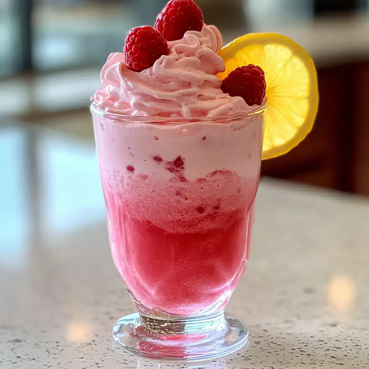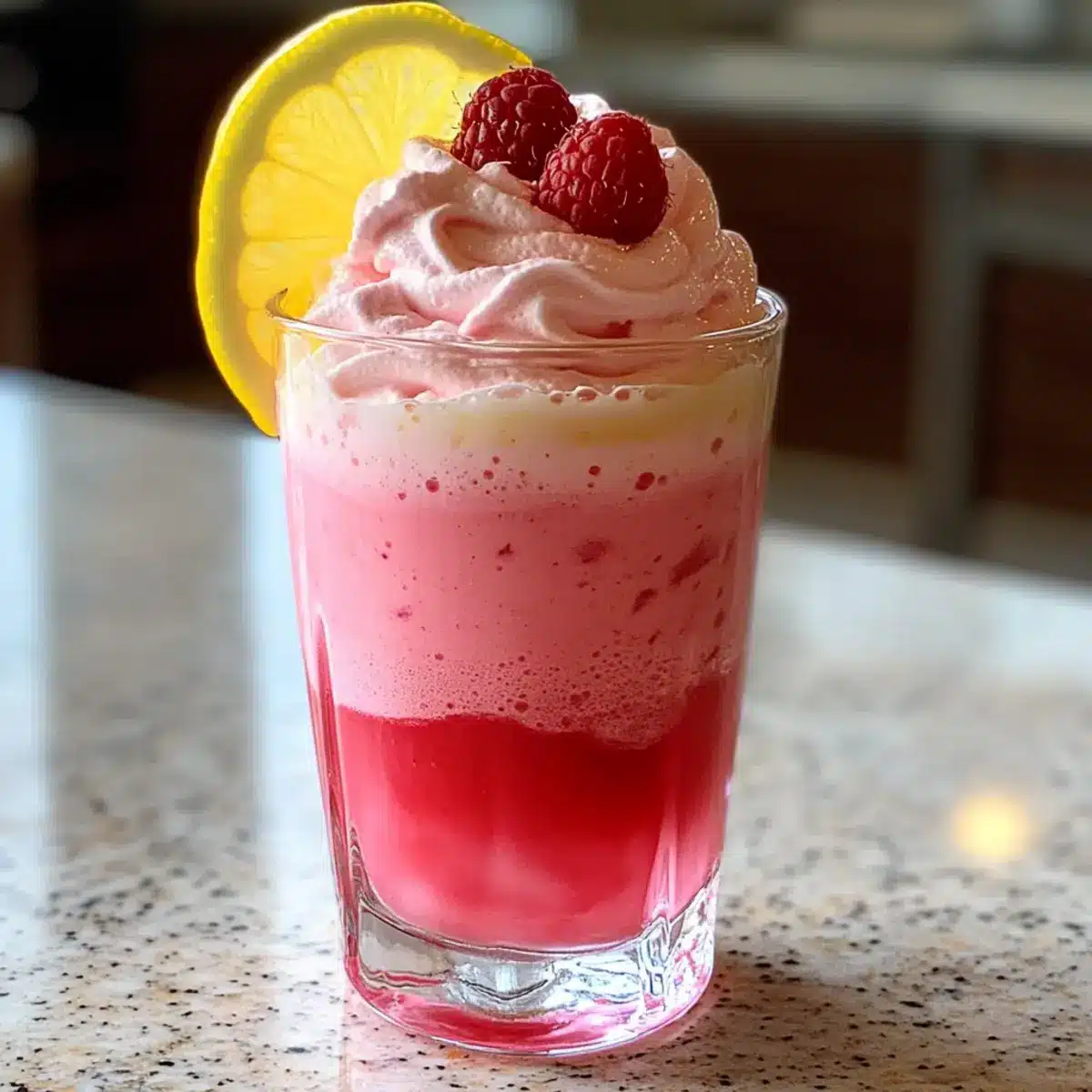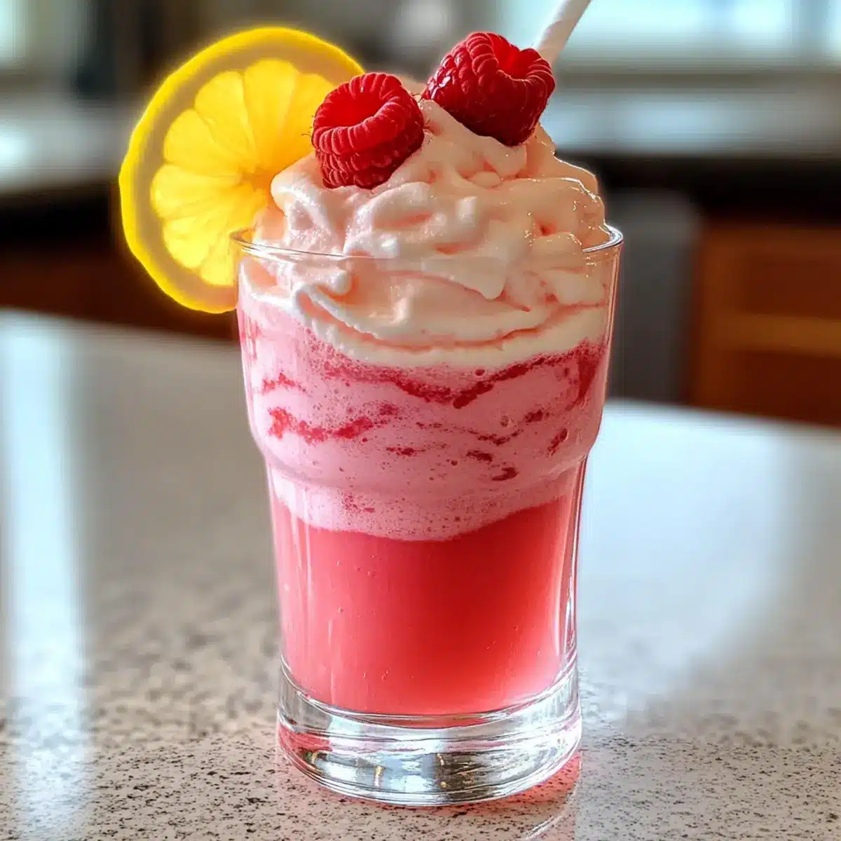 Erfrischender Genuss: Die Kombination aus spritziger Limonade und süßen Himbeerswirls sorgt für einen perfekten Geschmack, der an Sommertage und Gartenpartys erinnert.