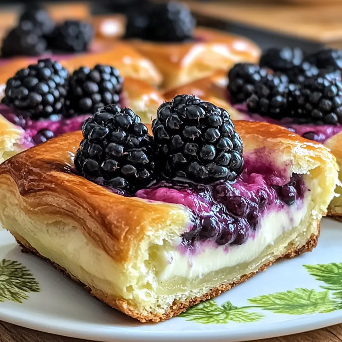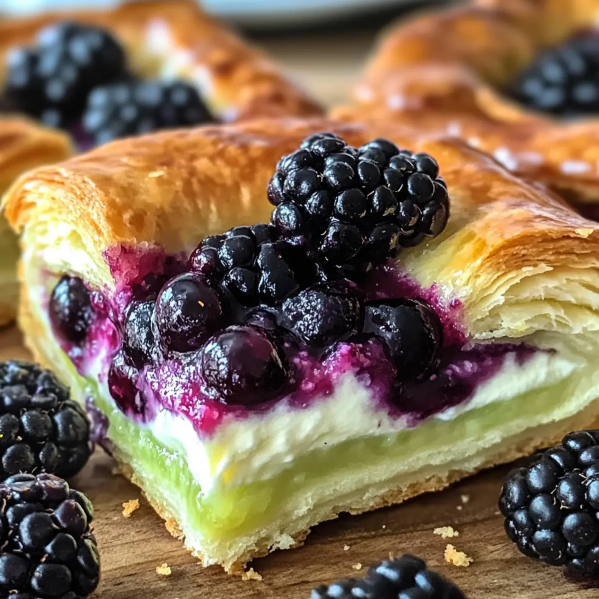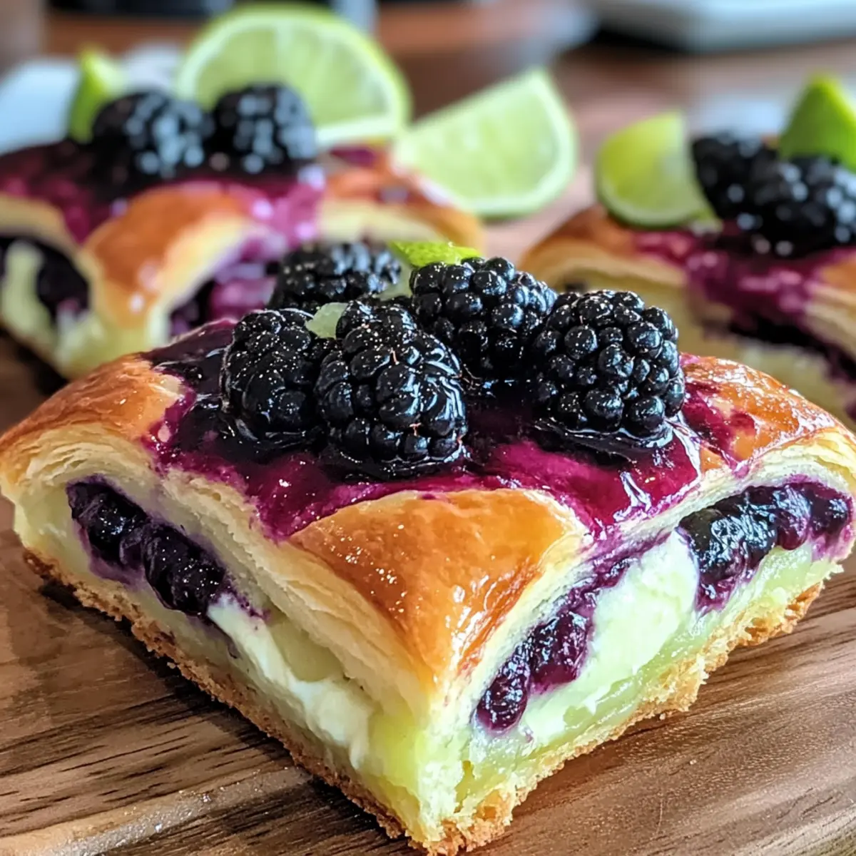 Die Schwarzbeer-Käsekuchen dänische Limette sind ideal für Meal Prep! Du kannst die Käsekuchenfüllung bis zu 3 Tage im Voraus zubereiten und im Kühlschrank aufbewahren – das spart Zeit, besonders an hektischen Tagen. Lasse die Blätterteigquadrate im Kühlschrank auftauen, wenn du sie aus der Gefriertruhe verwendest, um sicherzustellen, dass sie beim Backen schön flaky bleiben. Wenn du bereit bist zu backen, lege die Blätterteigquadrate auf ein Backblech, löffle die vorbereitete Füllung darauf und backe sie etwa 20-25 Minuten bis zur goldenen Bräunung. So hast du schnell ein köstliches Dessert, das einfach nur himmlisch schmeckt und ebenso frisch wie frisch gebacken wirkt!