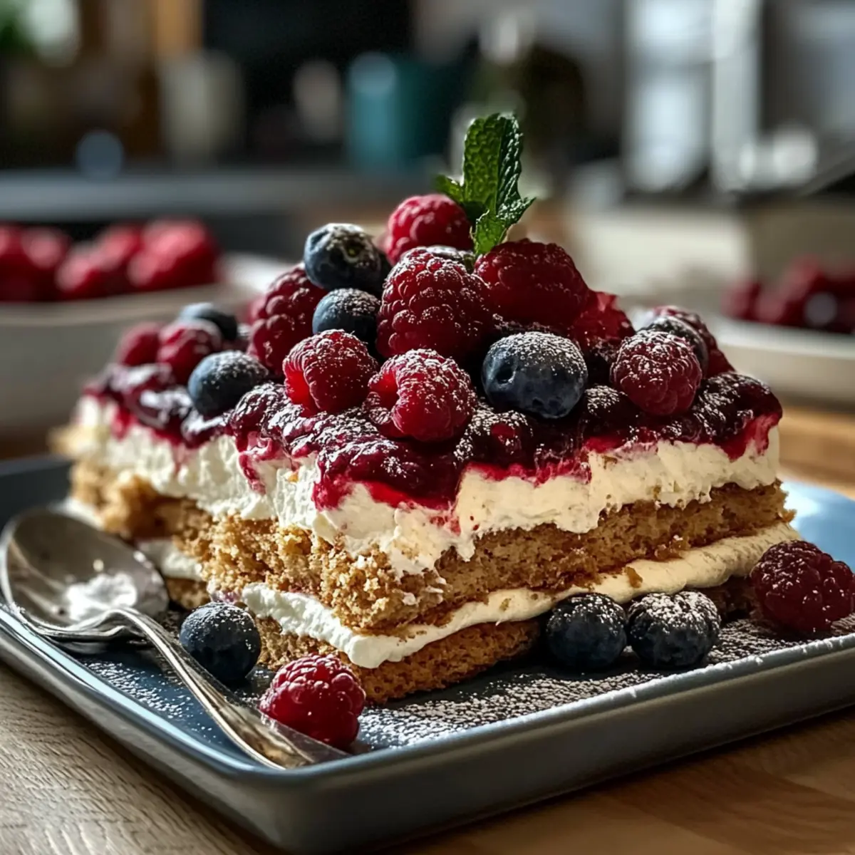 - TK-Beeren – bringen Frische und eine fruchtige Note ins Dessert; frische Himbeeren oder Heidelbeeren können ebenfalls verwendet werden.