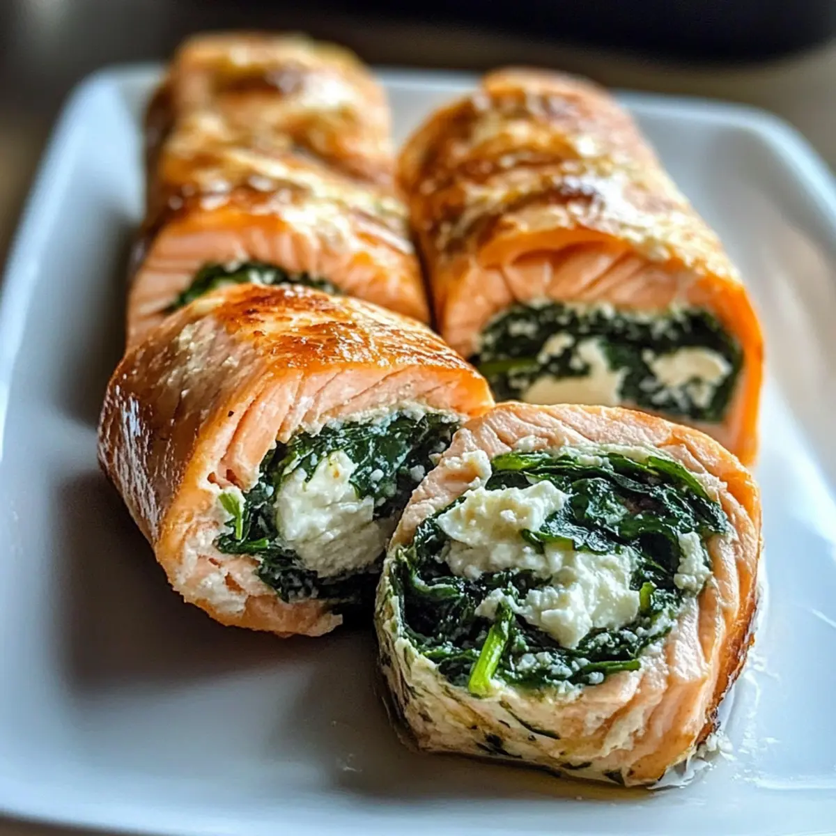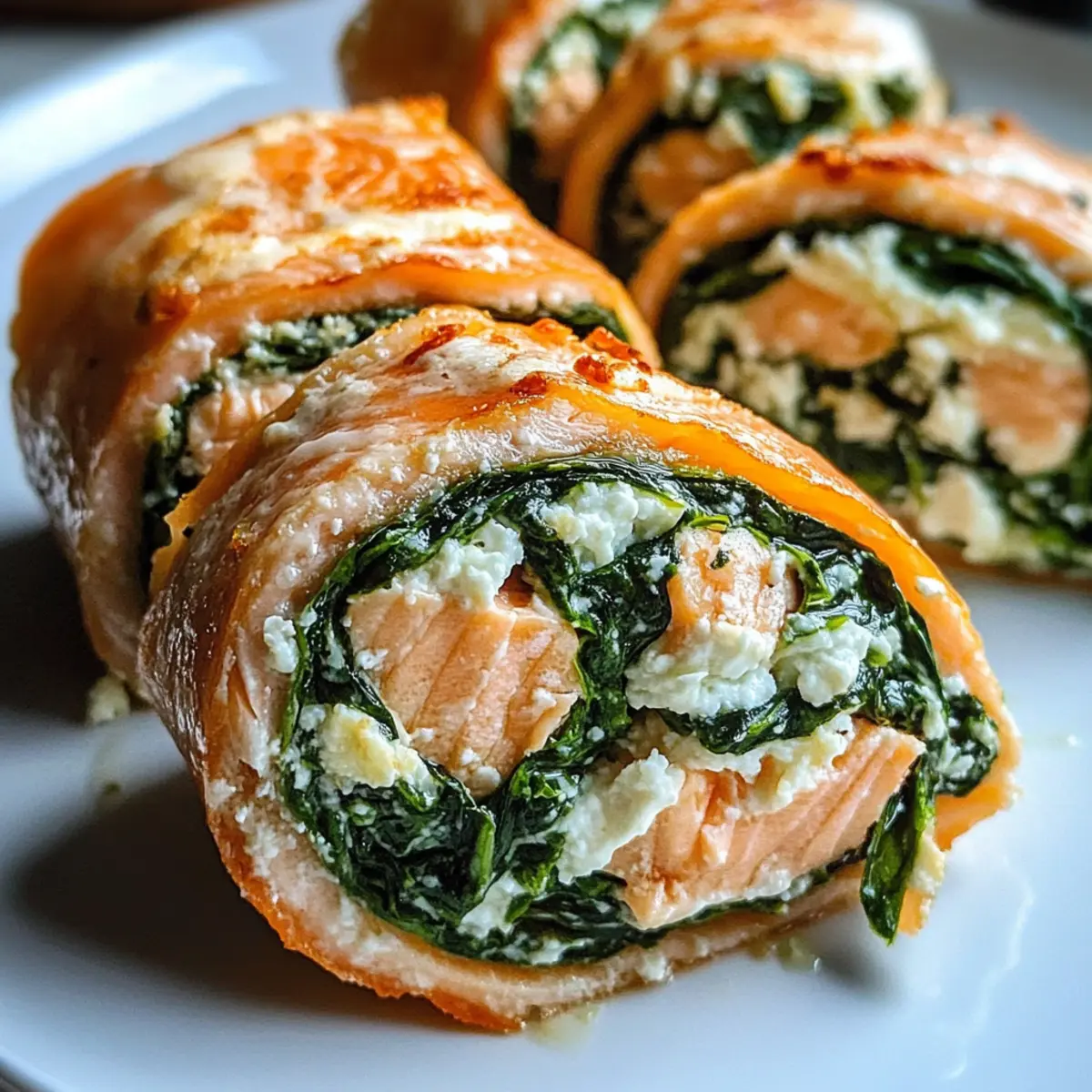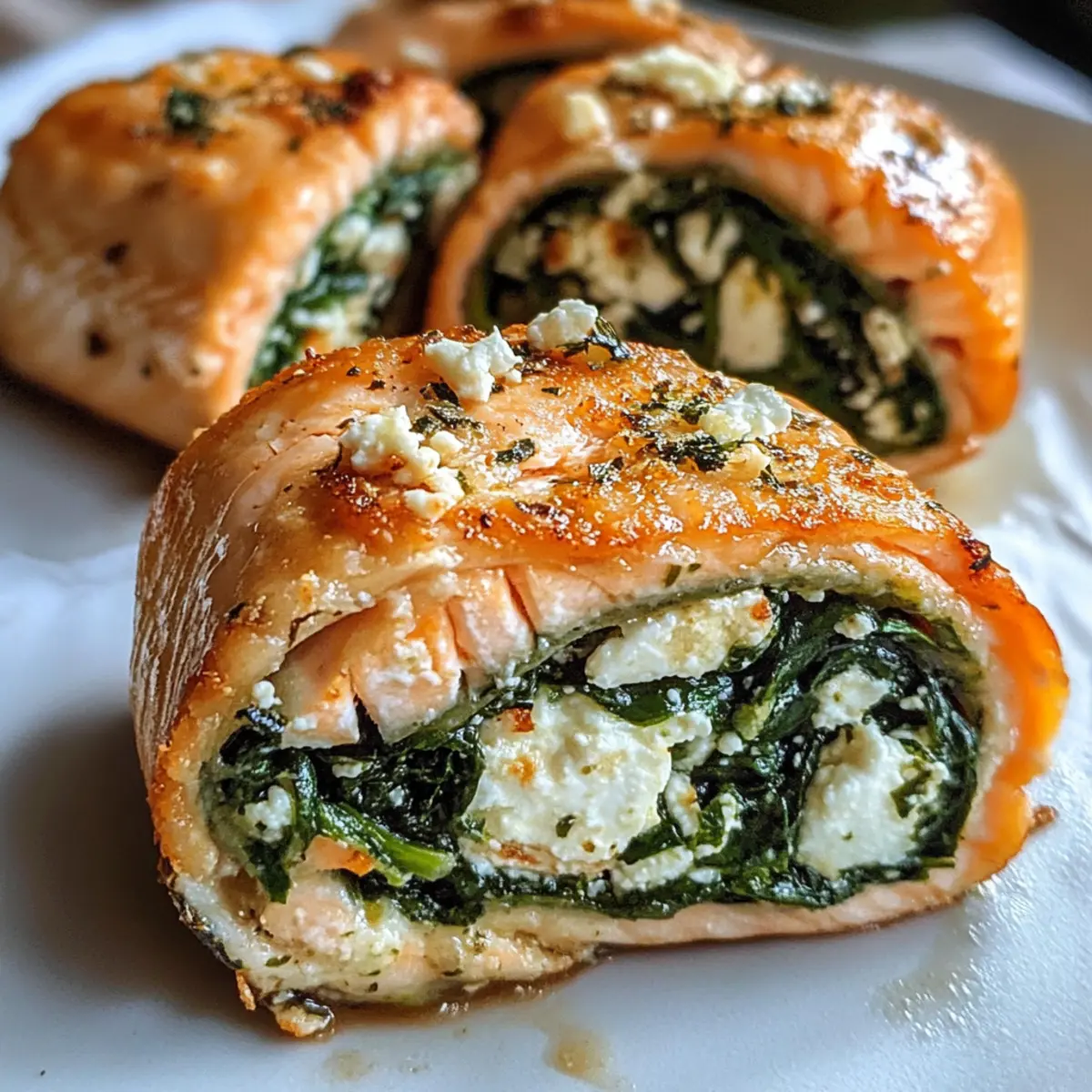 Spinat Feta Gefüllte Lachs Pinwheels für Genießer
