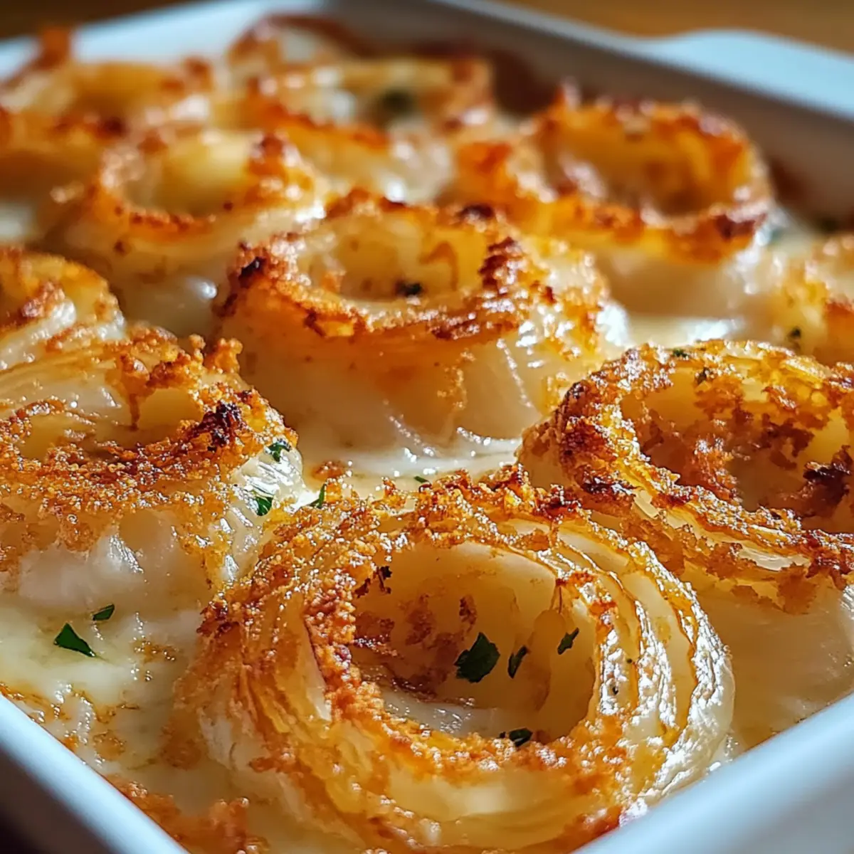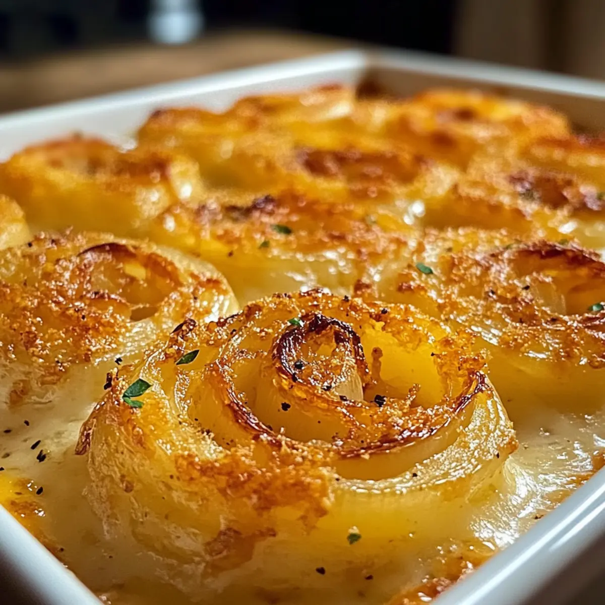 - Gleichmäßige Schichtung: Achten Sie darauf, die Zwiebelringe gleichmäßig in der Form zu verteilen. Eine gleichmäßige Schichtung sorgt dafür, dass alle Ringe gleichmäßig garen und jeder Biss köstlich ist.