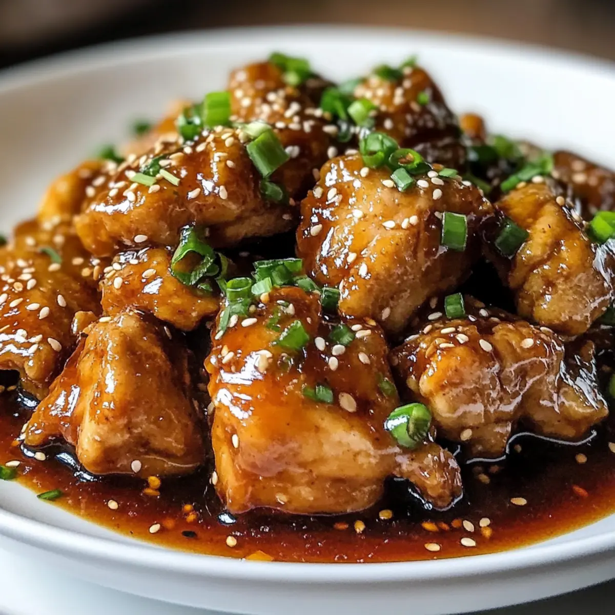 - Gib die Hähnchenschenkel zurück in die Sauce und serviere sie heiß über Reis, garniert mit Sesamsamen und Frühlingszwiebeln.