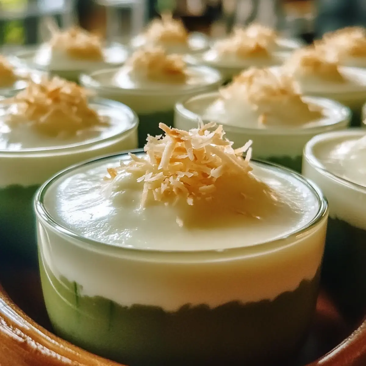 - Pandan-Saft – verleiht dem Pudding ein einzigartiges Aroma; alternativ kann verdünnter Pandan-Extrakt verwendet werden.